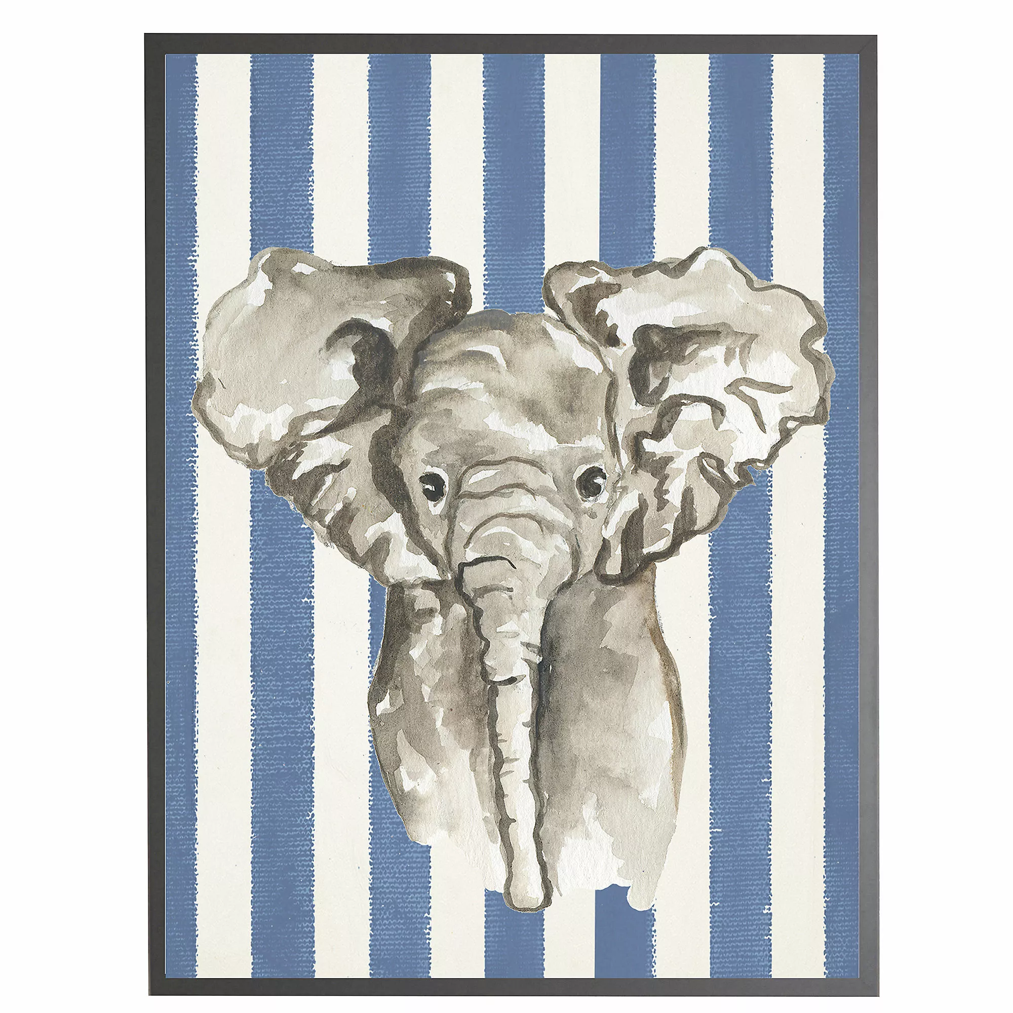 Watercolor baby elephant striped with frame.