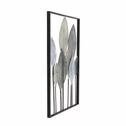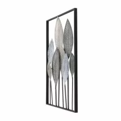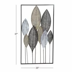 This farmhouse themed metal wall art set adds dimension and texture to a muted interior, be it a bedroom, an entryway, or a living room. Its design is simple yet artistic,—the metal leaves exude chic modernity—making this set a timeless and irresistible addition to one’s living space. It features eight stemmed leaf designs in metallic black, white, and brown finishes. They are ideal as large ‘open design’ framed sculptures that can be hanged and displayed on walls with a neutral color scheme. Use this 37″L X 20″W wall decor in place of a large mirror to create the illusion of a huge space in a small room. Easy-to-hang feature (nail or screw). Suitable for indoor use only. This item comes shipped in one carton.