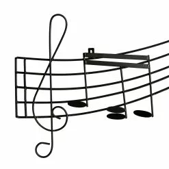Keep sight of the charm of music with this large black music decor up on your wall. The G-clef, musical notes, and music staff form a waving, dynamic wall-mounted music sculpture with a single-dimension and minimalist look. Apart from being a personal wall decor at home, this eclectic wall art also makes a unique gift for musicians, music lovers, and eclectic interior homeowners. It measures 49″L x 1″W x 21″H. Item is ready to hang by keyhole slots in the back. This item comes shipped in one carton. Traditional Style.
