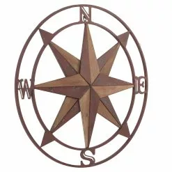 Place this on any blank wall space adding both texture and depth to your home. This brown compass wall decor will surely liven up your space with an open design that picks up color and pattern from your walls. This item ships in 1 carton. Designed for easy and safe installation. There are keyholes on the back for easy hanging. Suitable for indoor use only. Rustic style.