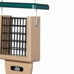 This attractive tail prop suet feeder is constructed with recycled poly lumber material It is easy to care for and easy to clean. It holds one suet cake.