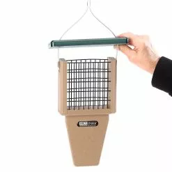 This attractive tail prop suet feeder is constructed with recycled poly lumber material It is easy to care for and easy to clean. It holds one suet cake.
