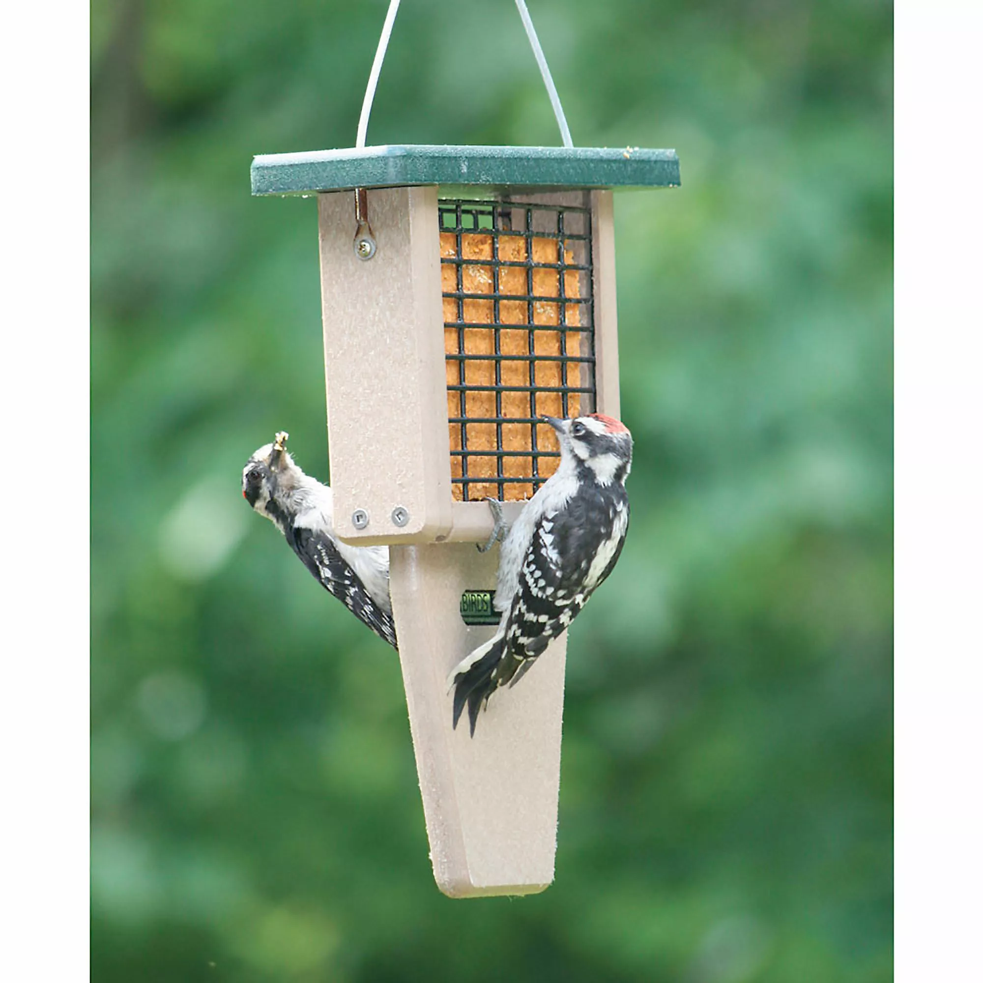 This attractive tail prop suet feeder is constructed with recycled poly lumber material It is easy to care for and easy to clean. It holds one suet cake.