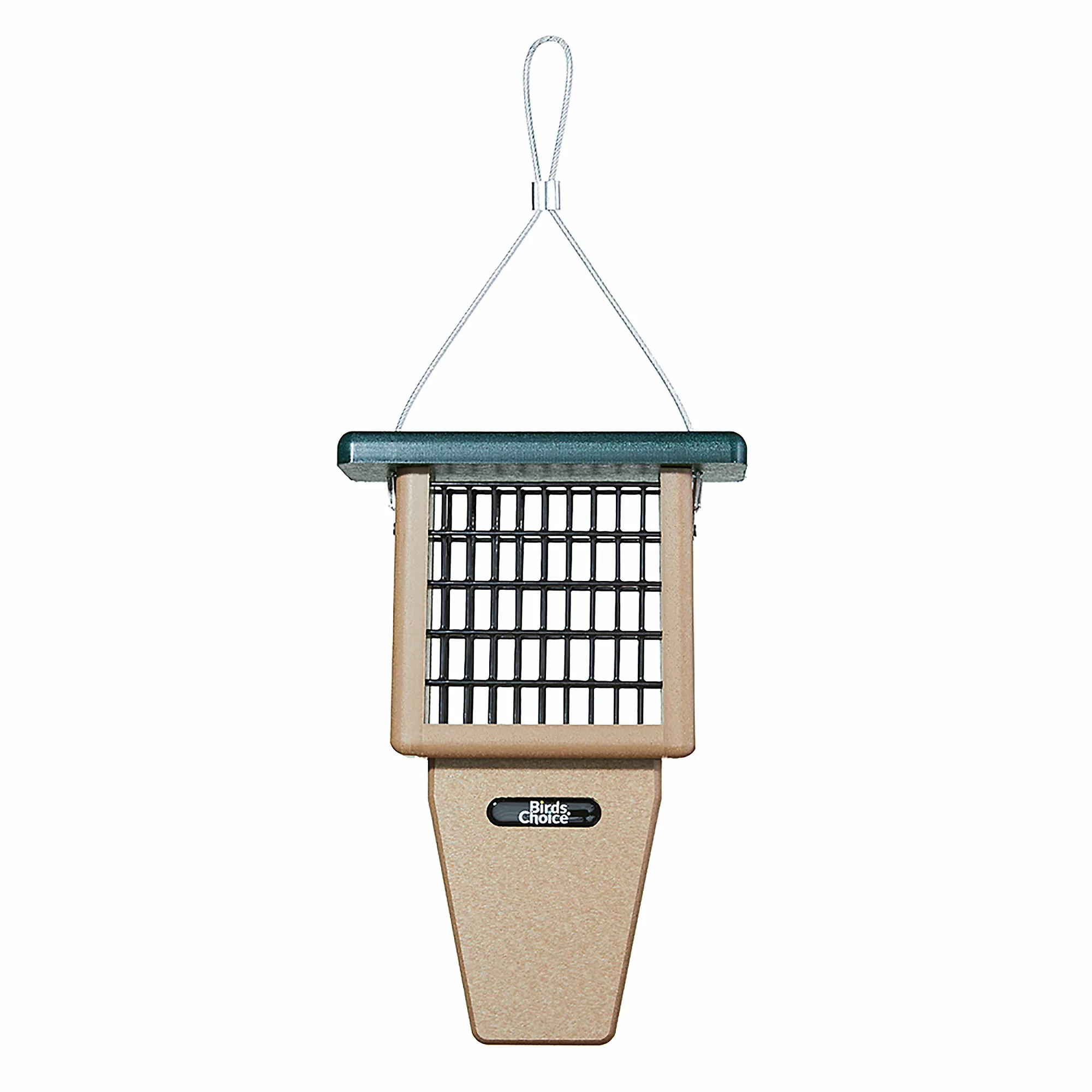 This attractive tail prop suet feeder is constructed with recycled poly lumber material It is easy to care for and easy to clean. It holds one suet cake.