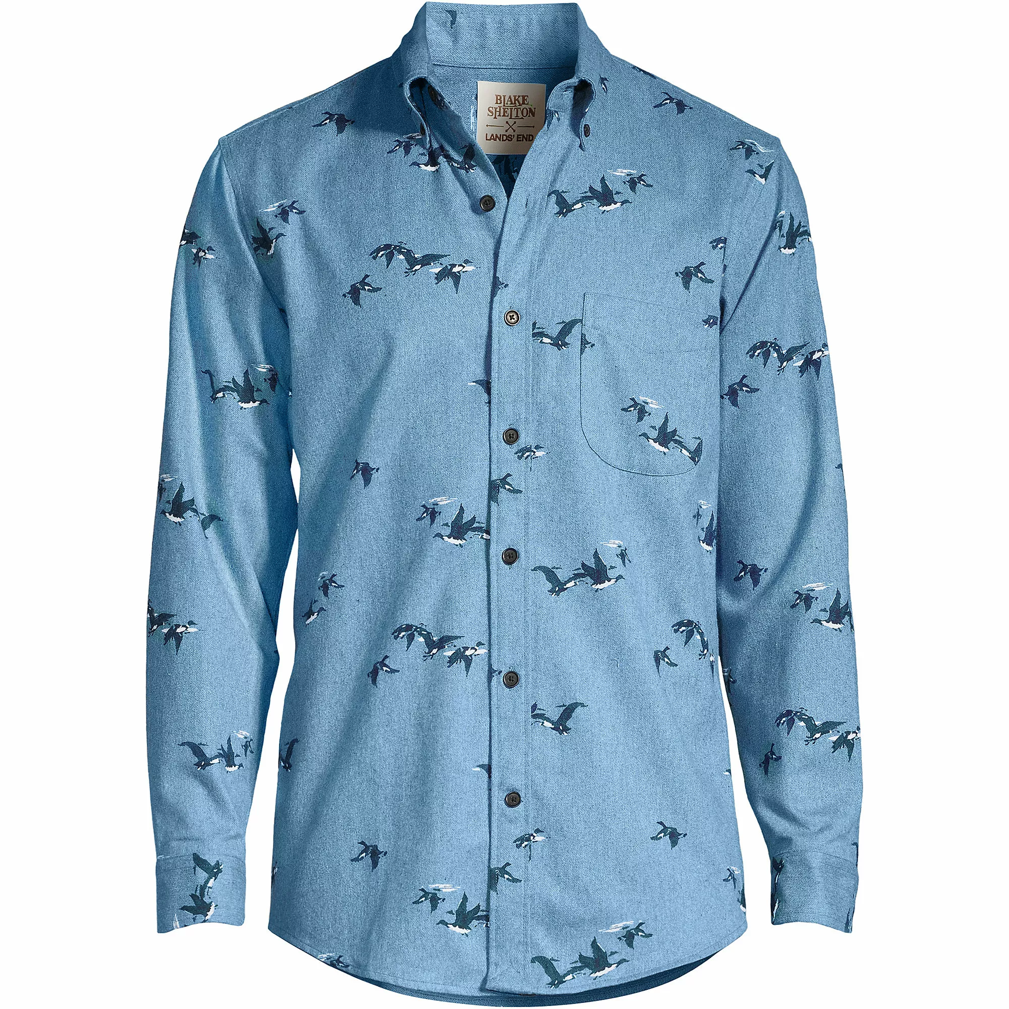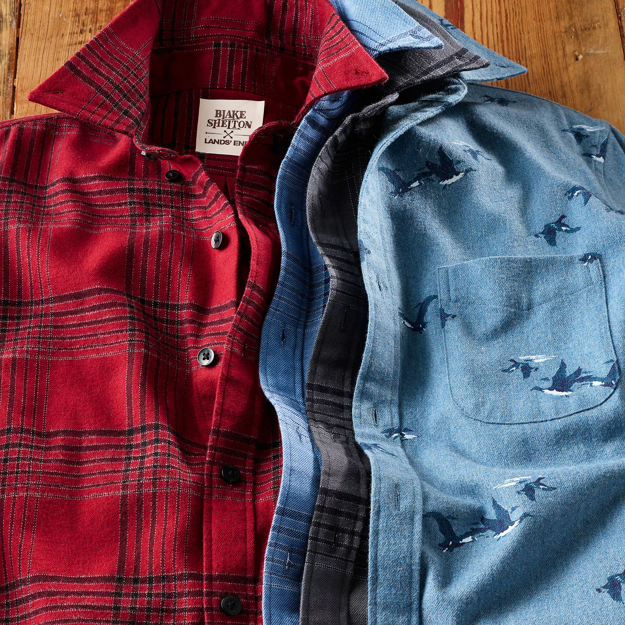 There’s flannel and then there’s Flagship™️ Flannel. Our softest, most substantial and most comfortable flannel. Oh, and see those patterns? If you look closely, you’ll realize one resembles the six strings of a guitar, the other outlines of our two home states – Wisconsin for Lands’ End and Oklahoma for Blake – plus seventeen others that make up America’s heartland and lastly, migrating ducks. “I think what I cooked up with Lands’ End is gonna fit pretty awesome into your world. Check it out and I’ll see y’all on the runway. Just kidding. I’ll be at Lands’ End.” – Blake Shelton