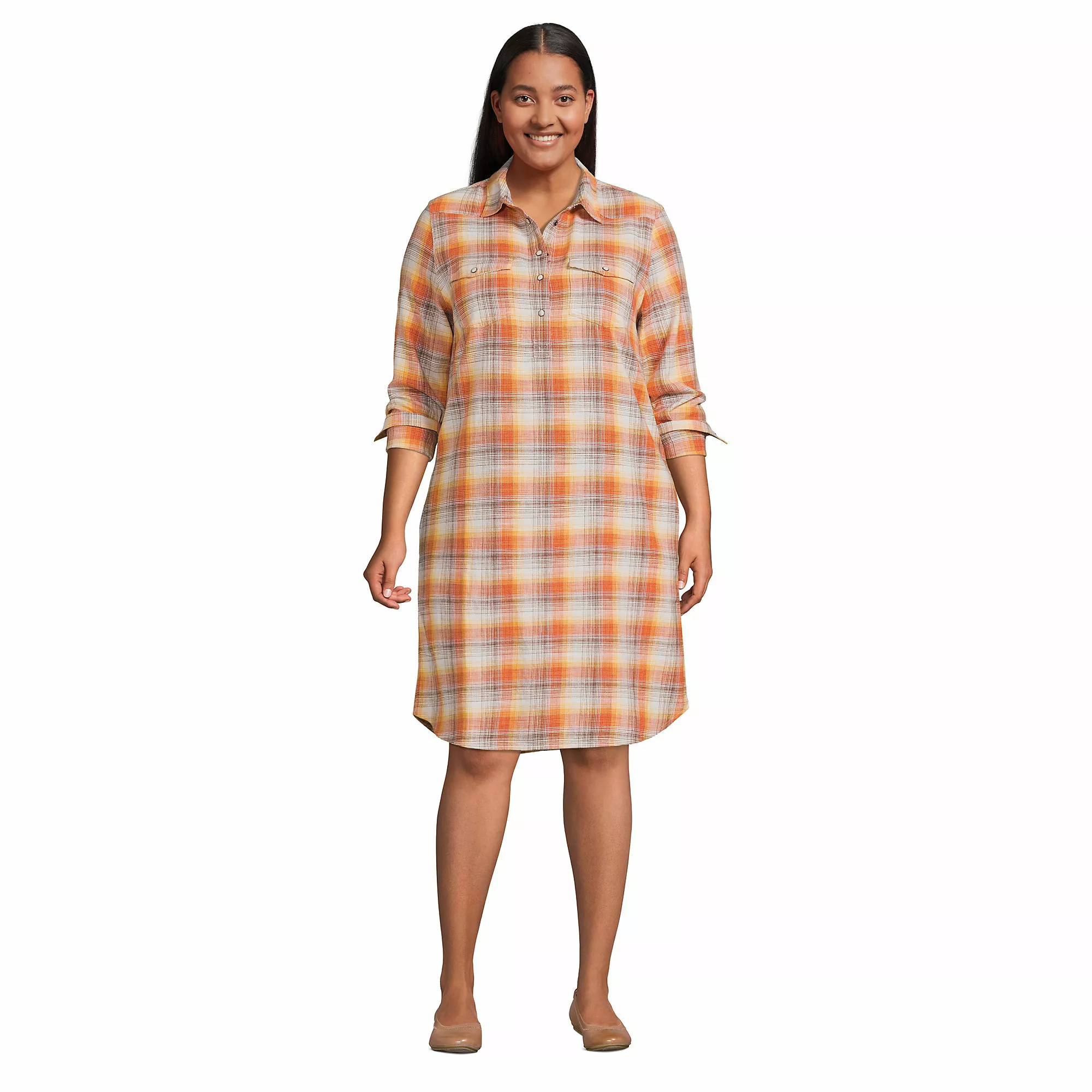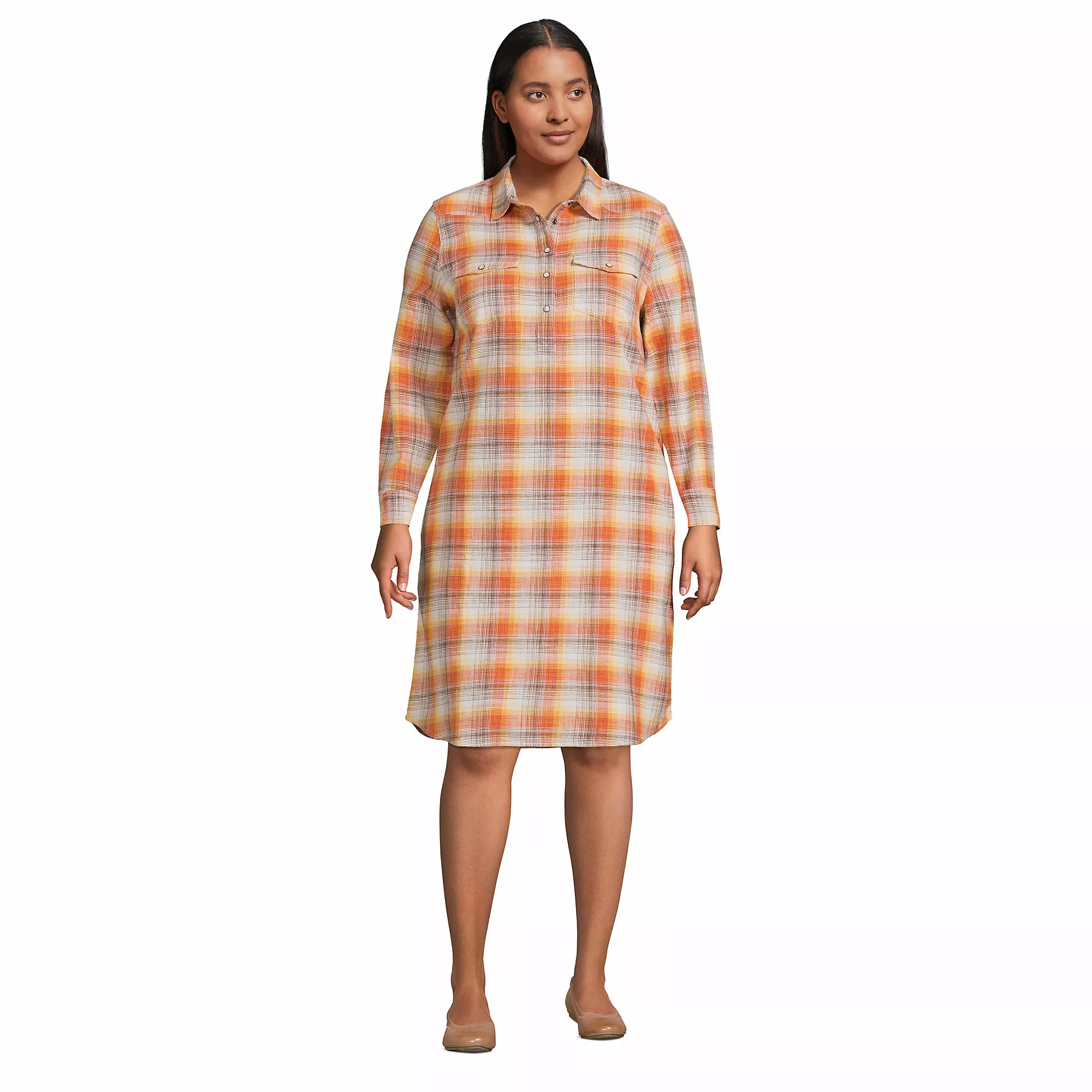 A classic plaid shirt dress, with a little country twist. The Western shirt is Blake’s favorite shirt from our men’s collection, so we just had to borrow it from the boys and make it into a dress (with pockets!). Wear it with bare legs and sandals or sneakers or with leggings or tights and booties or flats – so versatile, so comfortable and so stylish without even trying. “I think what I cooked up with Lands’ End is gonna fit pretty awesome into your world. When you know, you know.” – Blake Shelton