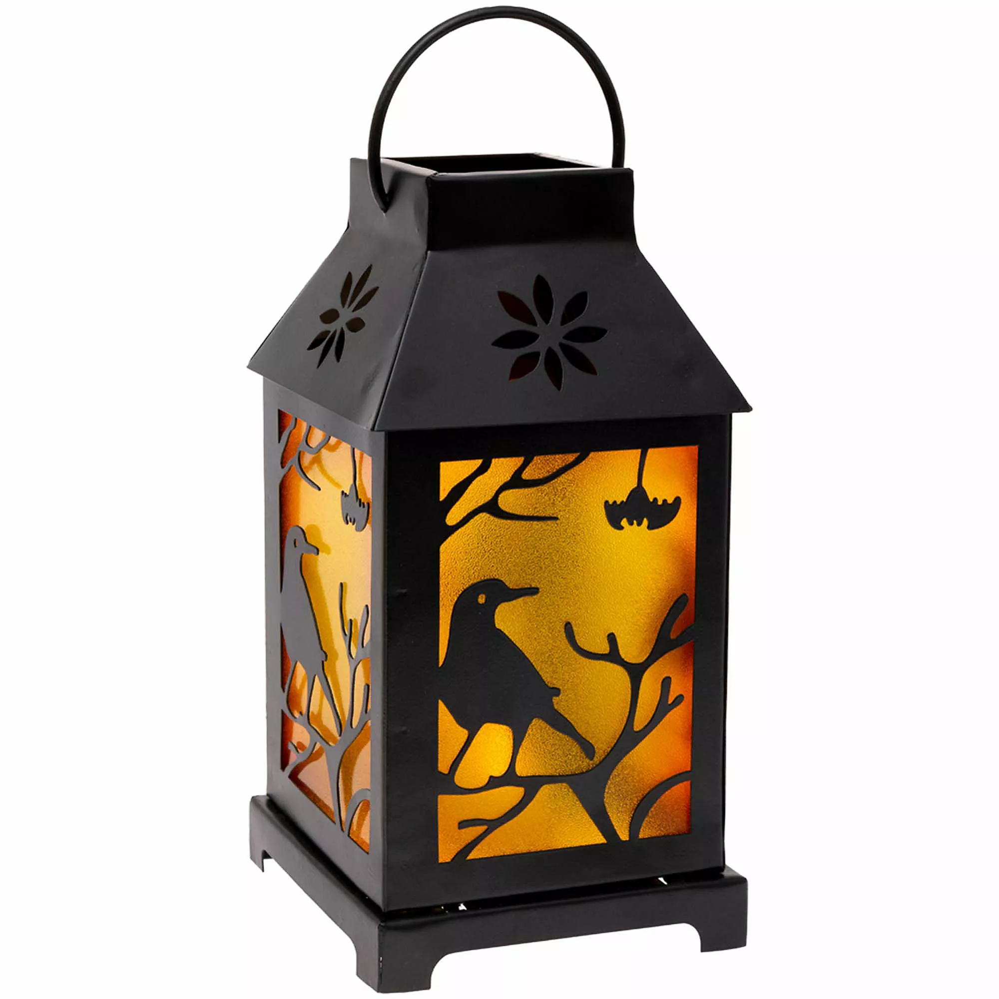 Quoth The Raven Nevermore” Beautifully dark and romantic at the same time. This piece is hand stained in a dark rich ebony allowing for the subtle wood grain to peer through. Metal lantern with glass walls.