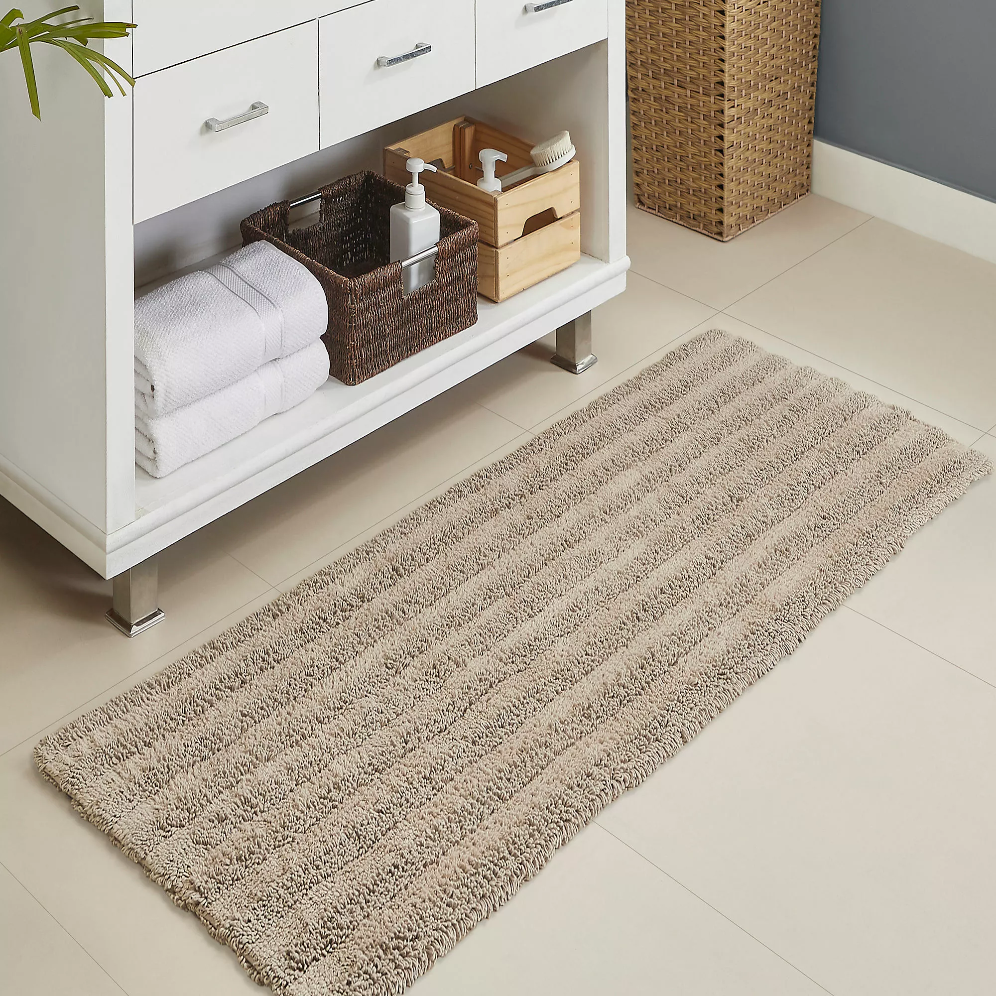 The Stripe Cannon Collection Bath Rugs are constructed utilizing absorbent 100% cotton material to soak up excess water after exiting the bath or shower. The classic, yet stylish set is perfect to keep your bathroom looking great. The comfortable texture of the Stripe cannon Collection Bath Mats offers a dry and cozy place to stand when you step out of the shower. This bath runner is also fully reversible with soft cotton material on both sides offering plush comfort to your feet.