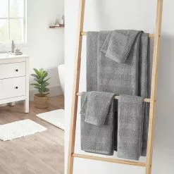 Cannon Shear Bliss towels and washcloths are made with the finest Grade A cotton for unmatched breathability and softness. The striped texture appearance offers an unexpected dimension to your bathroom. The combination of shear velour and pique weave shows a textured, dimensional look adding an unexpected, modern look to your bathroom linens. The modern form does not sacrifice function: the dual weave allows for less lint and easy care.