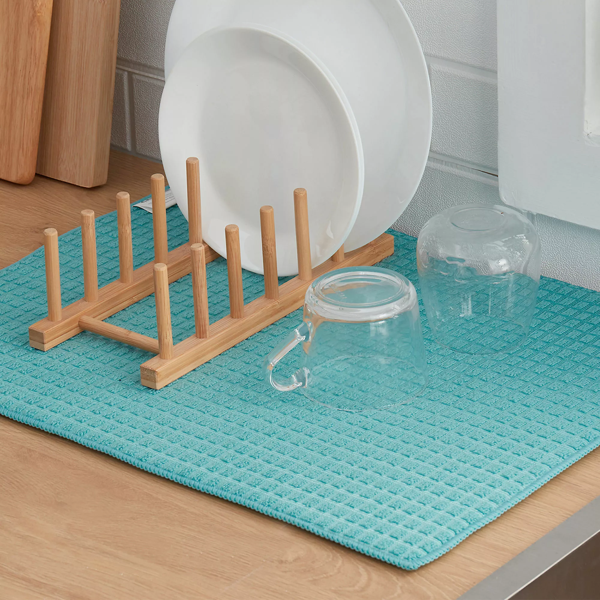 With a powerful heritage and products that are known for their high quality, easy care and stylish appeal, the Cannon brand remains an American staple. Founded in 1887, Cannon is one of the most loved home brands among consumers in the USA. The longevity and success of this iconic American brand continues delivering consistent quality, which is prevalent in our kitchen collection. Our drying mats are designed to stand up to daily wear and tear. The microfiber top with mesh backing enhances absorption and speeds moisture evaporation, ensuring your dishes and utensils dry quickly and completely, and the tight overlock edge stitching maximizes durability. Available in 3 crowd-pleasing unisex colors, this mat is sure to compliment any kitchen.