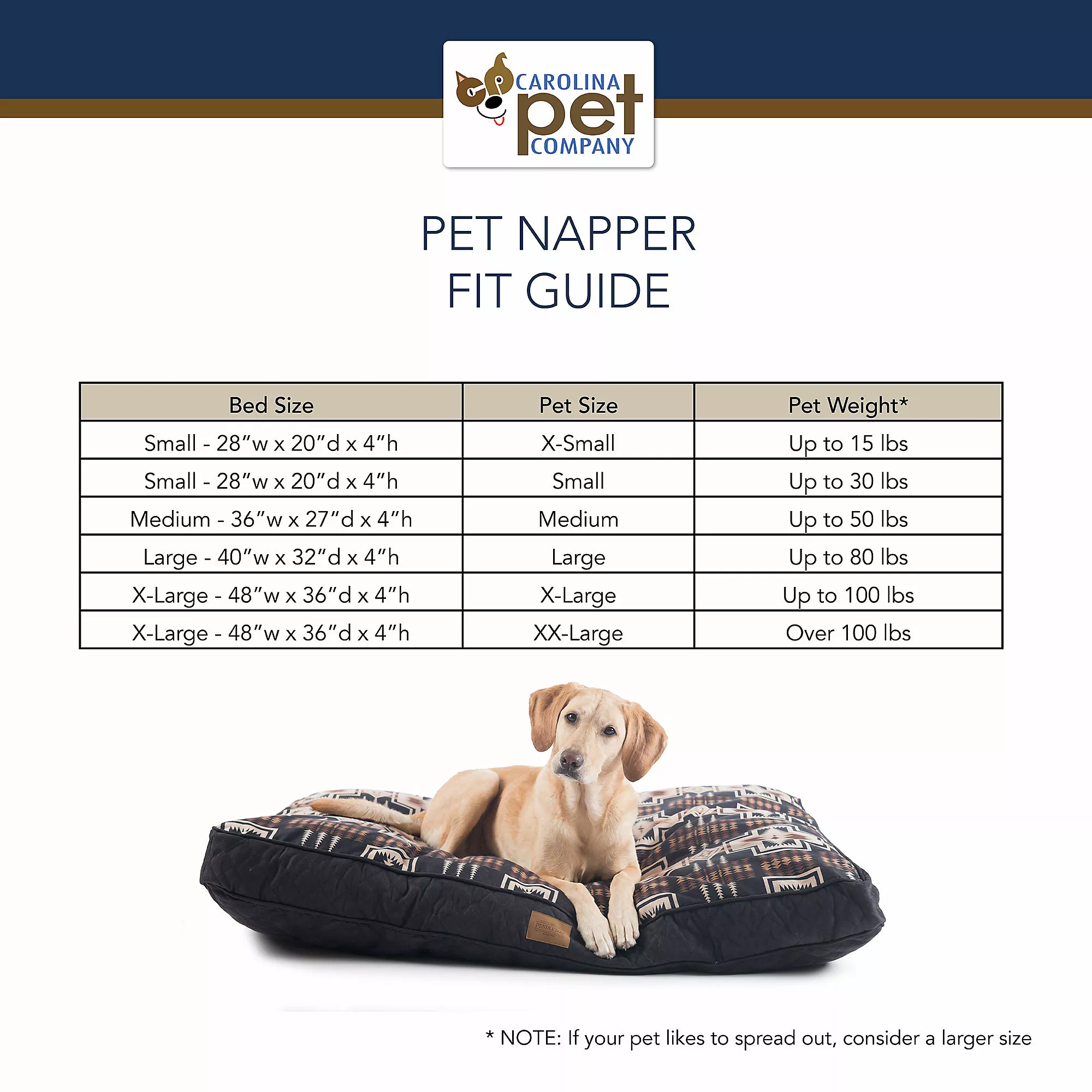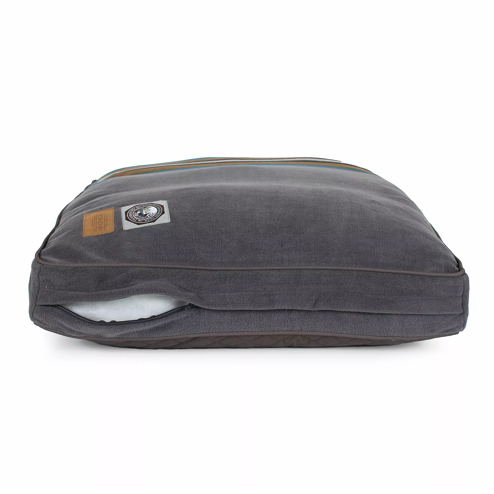The National Park Pet Napper features the bold colors of the Pendleton National Park blanket patterns on a durable non-pill polar fleece fabric. These beds are overstuffed with recycled high-loft Memory Fiber polyester fill to keep pets elevated off cold floors and provide relief on joints and pressure points. The insert features a channel design to prevent the fiber from shifting.