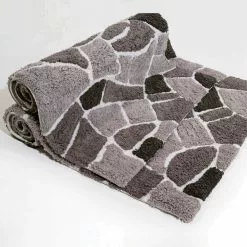 This 2-piece Boulder Bath Rug Set by Chesapeake Merchandising features a modern stone design that will enrich any space with distinctive style. Your bathroom decor will take on an elegant tone with the addition of these bath rugs. Go ahead and give your bathroom the upgrade it deserves with this two piece bath rug set. We promise that you won’t be disappointed as you sink your feet into the plush softness of these rugs after a relaxing shower or bath. The warm to dark tones of this bath rug set are a soft and subtle addition to your bathroom decor. We crafted these bath rugs with plush fabric machine tufted from 100% cotton that cushions your feet for pure comfort. Its water-absorbent construction ensures lasting quality, while a lightly sprayed anti-skid backing helps keep your rugs securely in place. The 2 piece set Includes a 21″x 34″ and 24″x 40″rug.