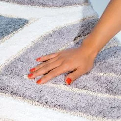 Plush fabric machine tufted from 100% cotton cushions your feet for pure comfort. These bath rugs are water-absorbent construction to ensure lasting quality. They are also lightly sprayed for an anti-skid backing that helps keep your rugs securely in place. The 2 piece set includes a 21″x 34″ and 24″x 40″rug.