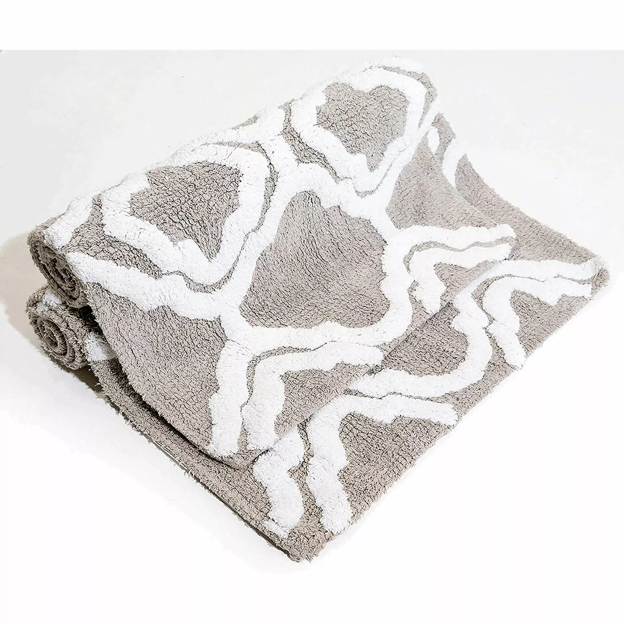 The Double Quatrefoil Bath Rug Set brings a luxury spa feel to your bath. From the elegance of the double quatrefoil pattern to the gentle background, this is a perfect choice for your bath decor. The soothing nature of these bath rugs can heighten the level of comfort in your bathroom experience. Never sacrifice quality when decorating something as regularly used as your bathroom. This bath rug set is machine tufted from 100% cotton for a wonderfully plush and absorbent experience. Both rugs feature a lightly sprayed anti-skid backing to help keep your rugs securely in place. The set includes a 21″x 34″ and a 24″x 40″ bath rug.