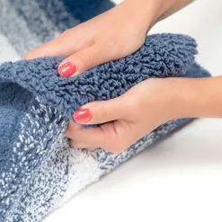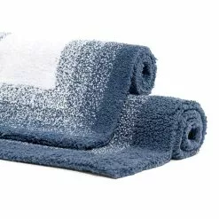 Step out onto this plush, Whitney Ombre reversible bath rug featuring an ombre racetrack design. The gradient tones in this 2 piece bath rug set will add a cool touch of color to your bathroom style. These bath rugs are exactly what you need to add a soothing touch of color to your bathroom. The soft, cotton of these bath rugs cushions your feet for pure comfort, while its water-absorbent construction and reversible design ensures lasting quality. The set is reversible and is machine tufted from 100% cotton. The ombre effect of this bath rug set fades from light to dark. These reversible bath rugs reduce the need for frequent washing. Our Whitney collection of reversible rugs comes in a variety of complementary colors. Give your bath decor the upgrade it needs with this two piece bath rug set in blue. Set includes one-21″x 34″ bath rug and one-17″x 24″ bath rug.