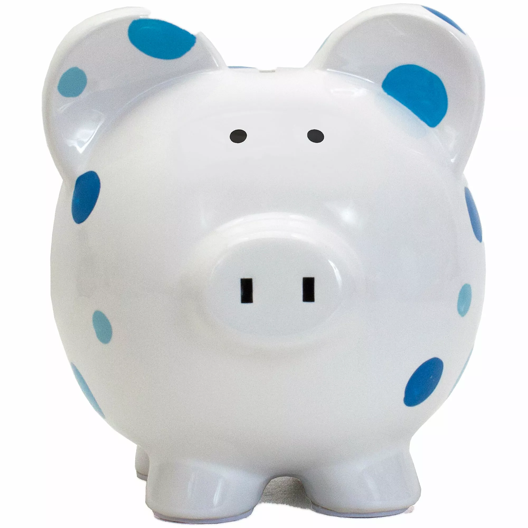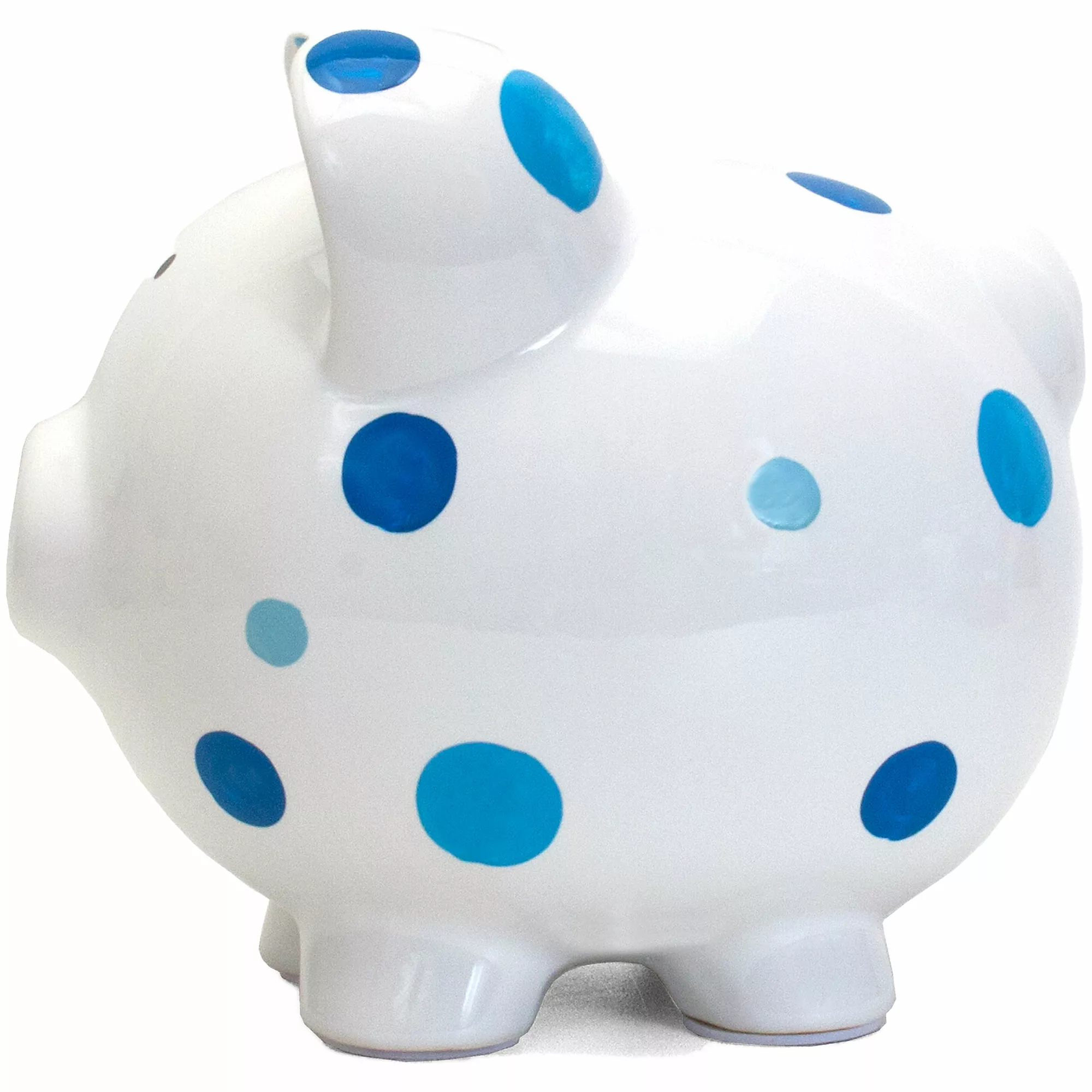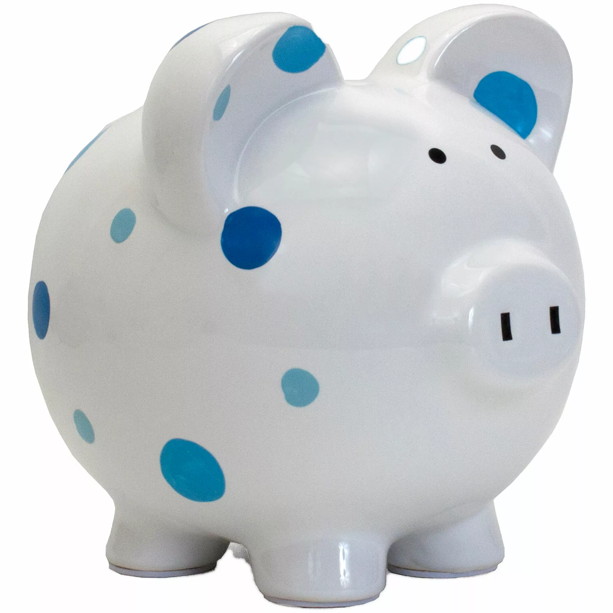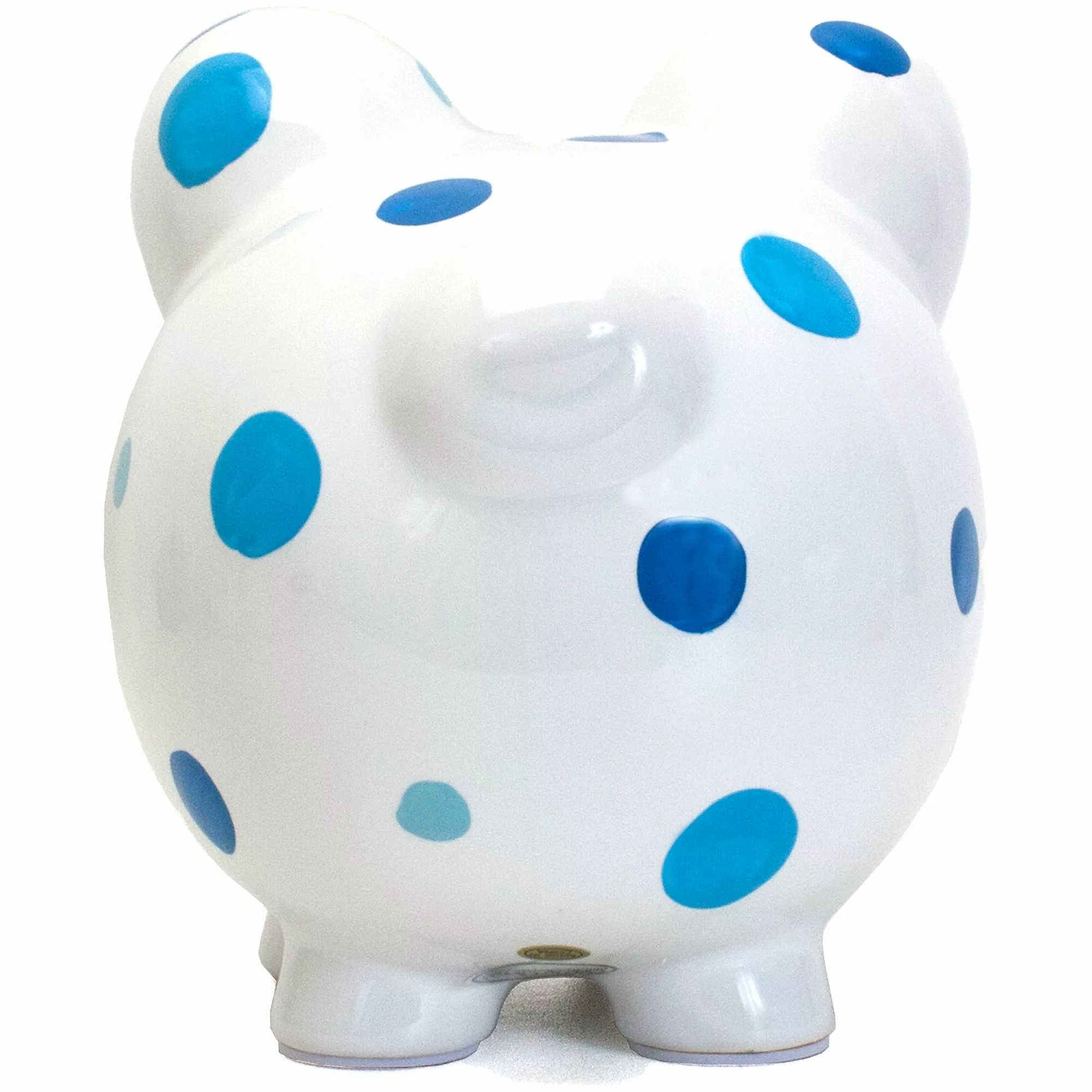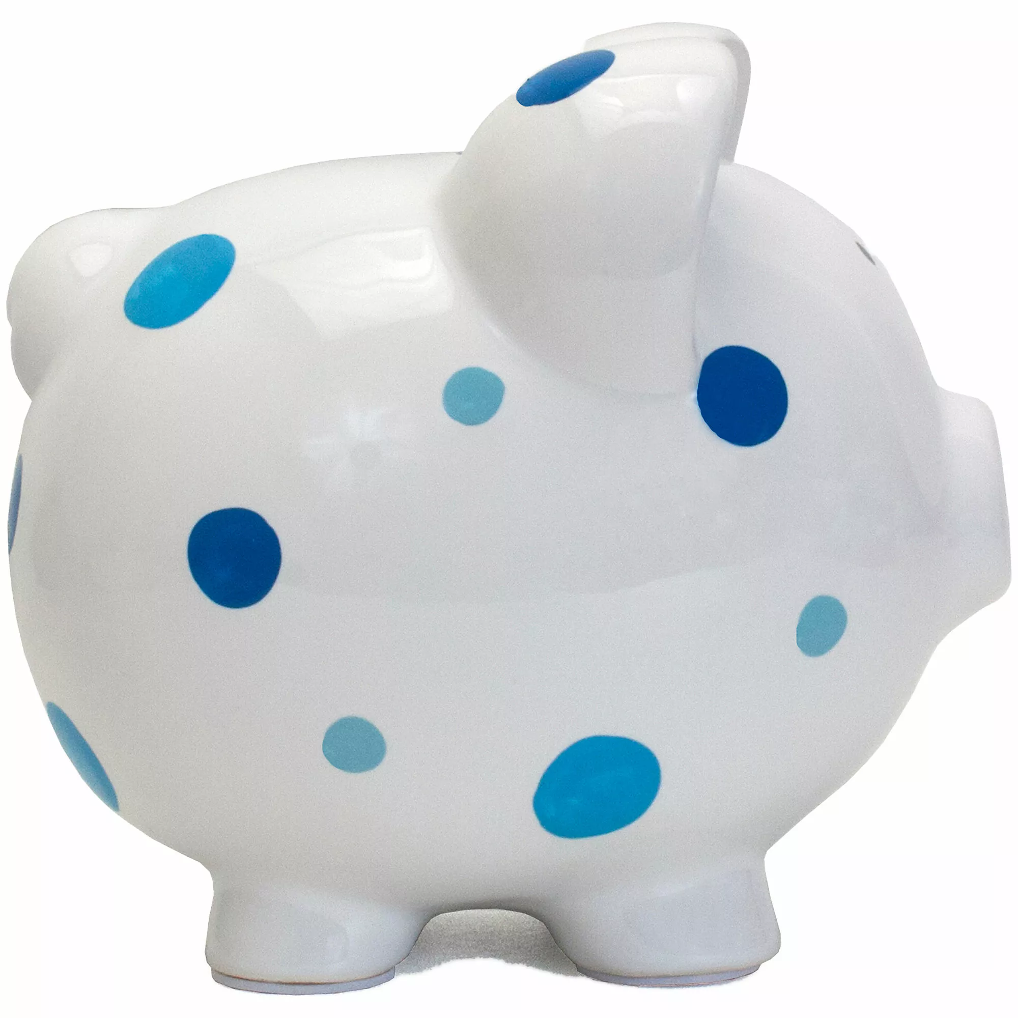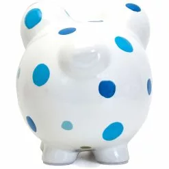 Beautifully glazed polka dot piggy bank features a hand painted design. Made of high quality ceramic dolomite for a long lasting classic keepsake. Kids will love learning to save their money as they fill up this special bank.
