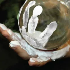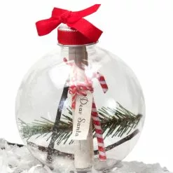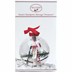 This shatterproof ornament includes a beautiful letter addressed to Santa where the child can write their Christmas wish list. To remove the wishlist from inside the globe, screw off the cap to easily and gently pull out the candy cane and write your letter marked “Dear Santa”. Kit includes shatterproof ornament, message with specially designed holder, ribbon, paint and sponge to make handprint around the globe.
