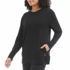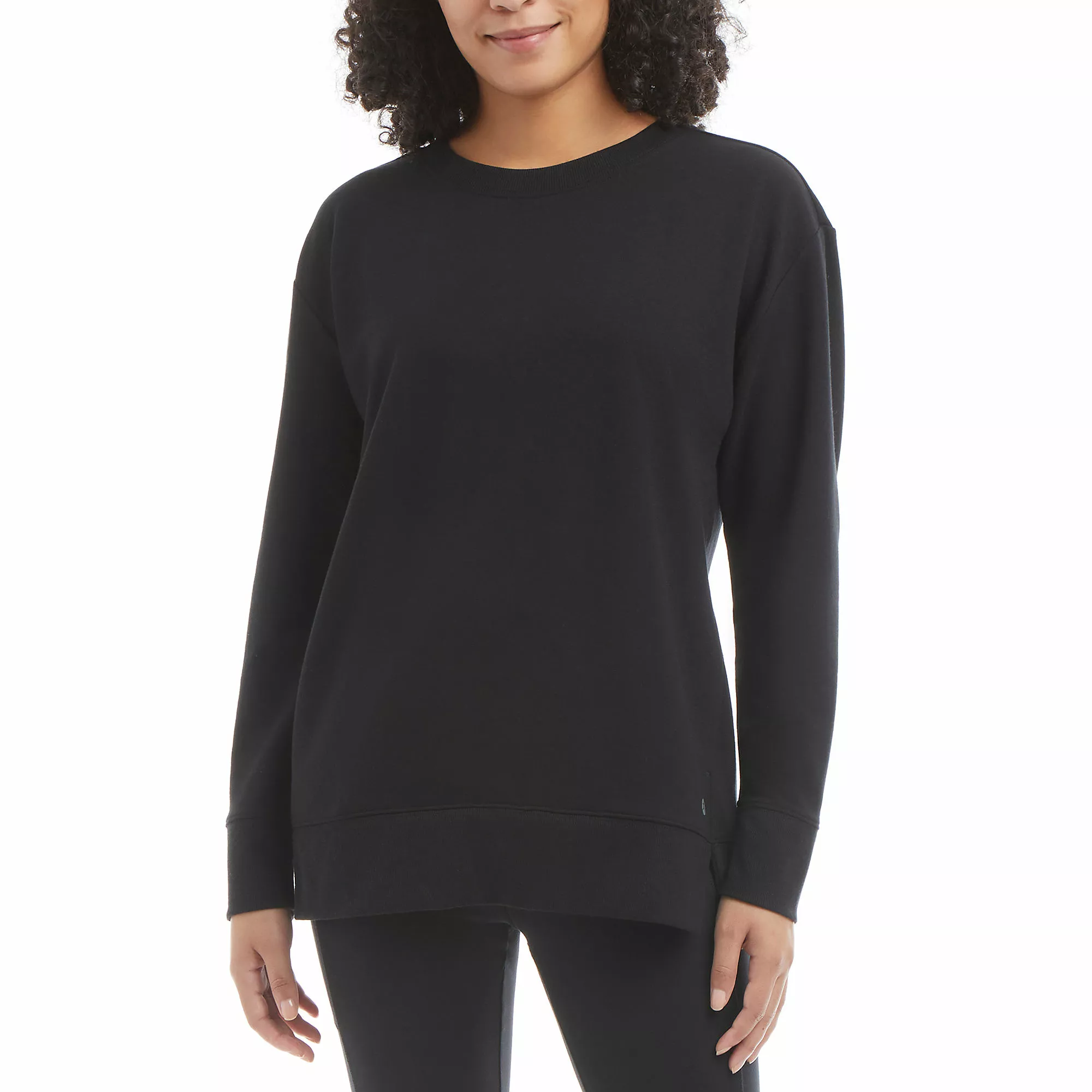 This Sweatshirt Tunic is anything but basic: it’s specially designed for ease of movement with details like dropped shoulders and side split hem. Plus the tunic length lends more coverage than most long-sleeve styles. Â