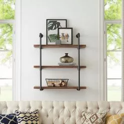 The Danya B. Three Tier Pipe Wall Shelf is as urban chic as it is useful! Combining imitation aged wood finish shelves with a rustic pipe frame is the newest approach to organization that can be used anywhere in your interior space. The Danya B. Three Tier Pipe Wall Shelf guarantees sturdy support for storage as well as a beautiful display for your decor items and brings the perfect urban industrial look to your home or office.