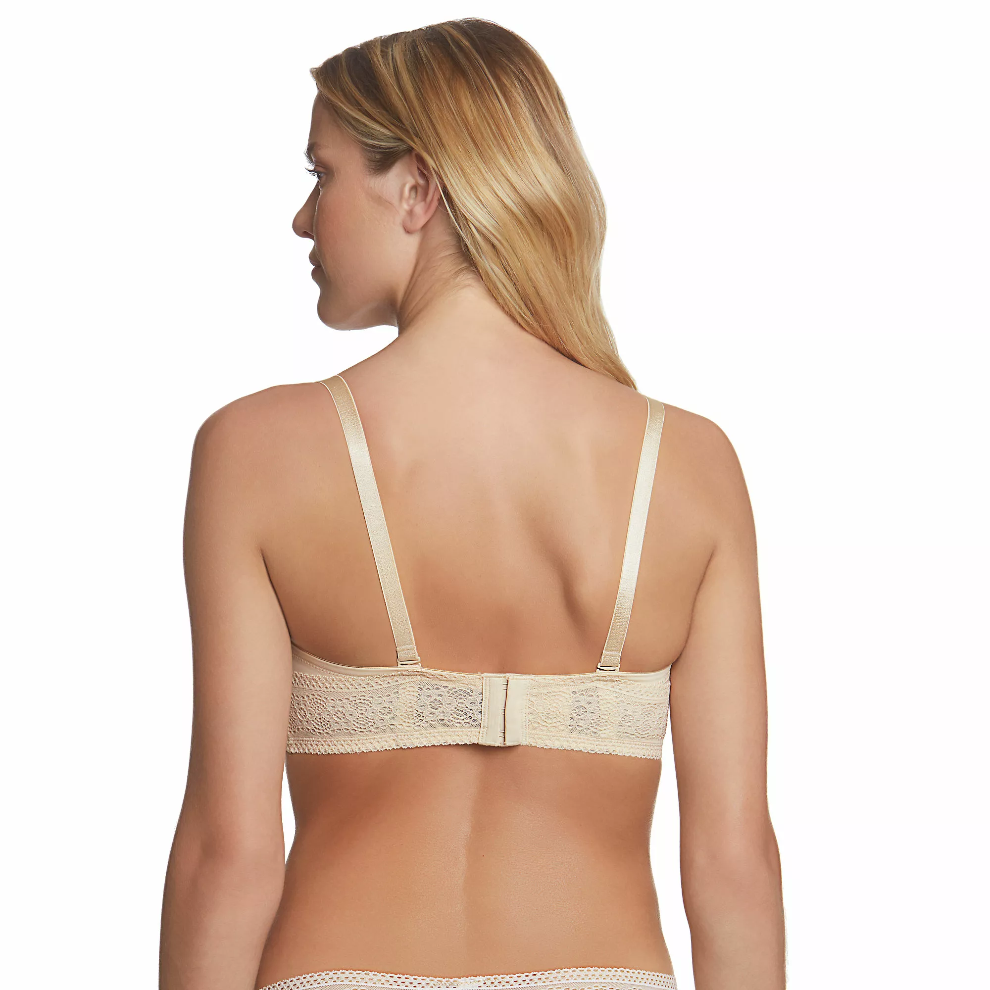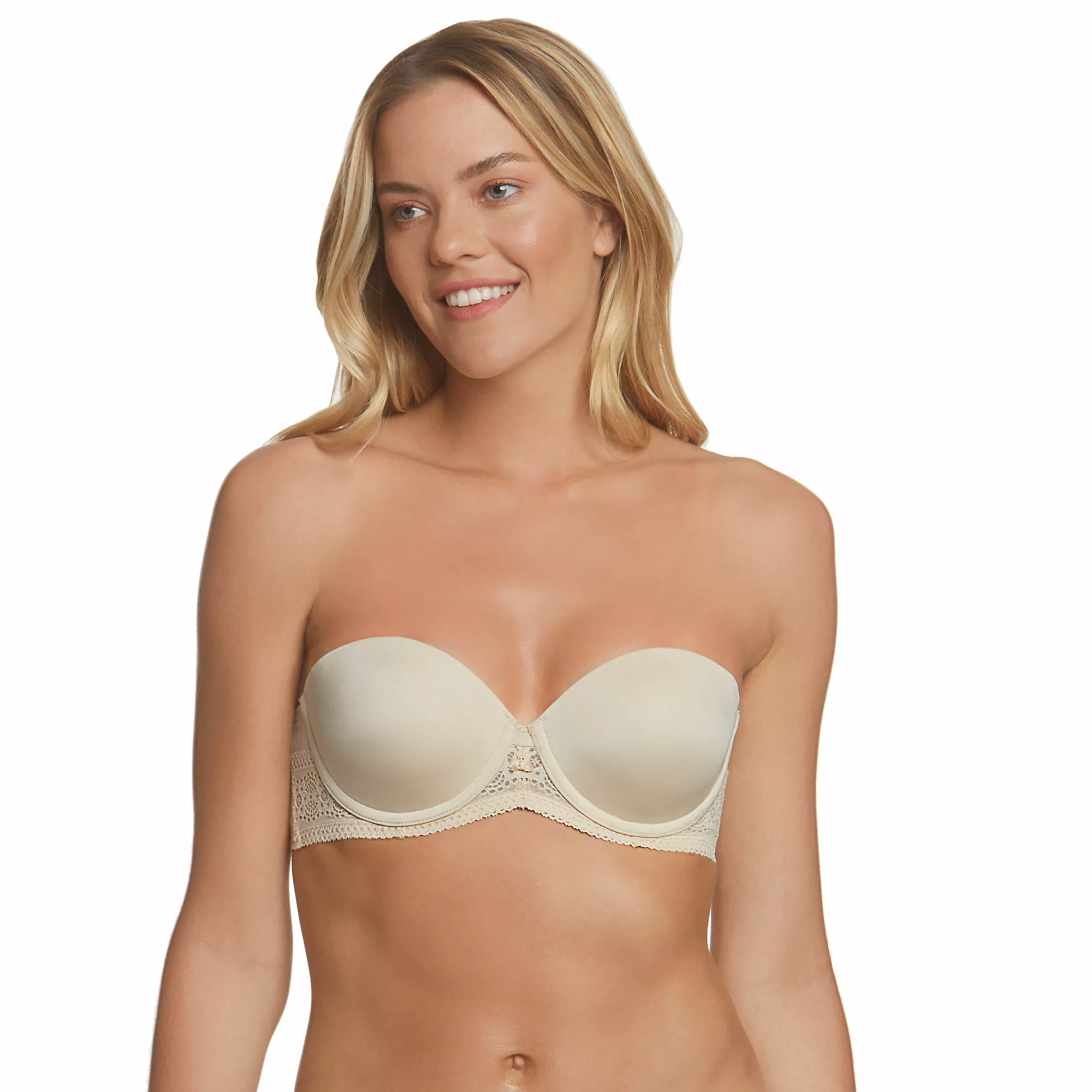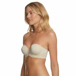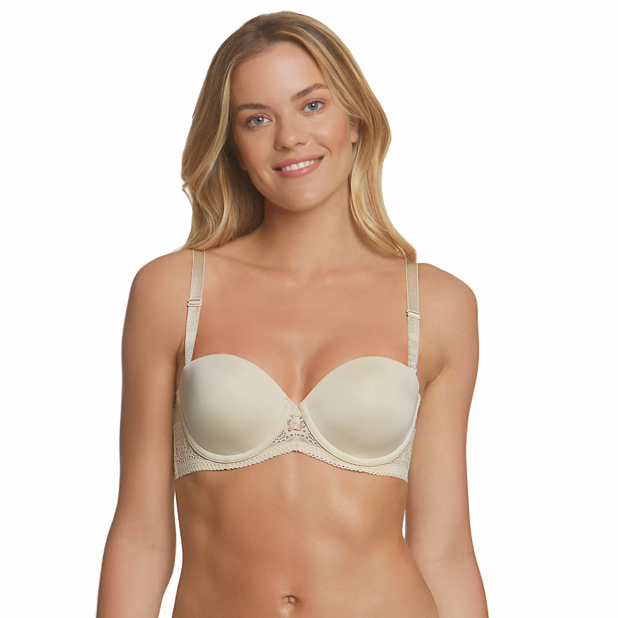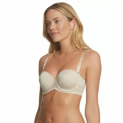 Every day feels like a special occasion in the Tessa Lace 4-way Convertible Strapless bra. This innovative luxury solution, shapes and smooths comfortably, fits perfectly, and holds snugly to inspire confidence. With featherlight seamless, breathable spacer cups covered in silky soft microfiber, and softly encased underwires set into a reinforced lace frame, Tessa provides perfect, sleek, opacity and shaping. Lush elastic surrounds the base of the frame and across the top of the back for stability and a secure, no-slip, comfortable fit. Double lined, wide, lace trim wings with light boning provide no-bulge and no-roll smoothness and stability with beautiful lace edged detail. Front adjustable, plush comfort straps (included) for easy positioning under various backs and necklines. Fine metal enameled hooks and soft cushioned back closure complete the total luxury experience. Dance the night away in complete confidence.
