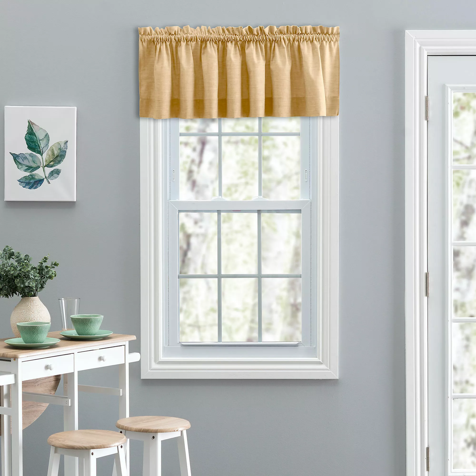 A stunning textured solid that is both relaxed and refined. Beautifully coordinates with any pattern. Made with 50-percent polyester/50-percent cotton duck fabric that creates a smooth draping effect, soft texture and easy maintenance. The tailored valance is constructed with a 1.5-inch header and 1.5-inch rod pocket. Width is measured at 58-inches, while length measures 15-inches. For wider windows simply add multiply valances together.