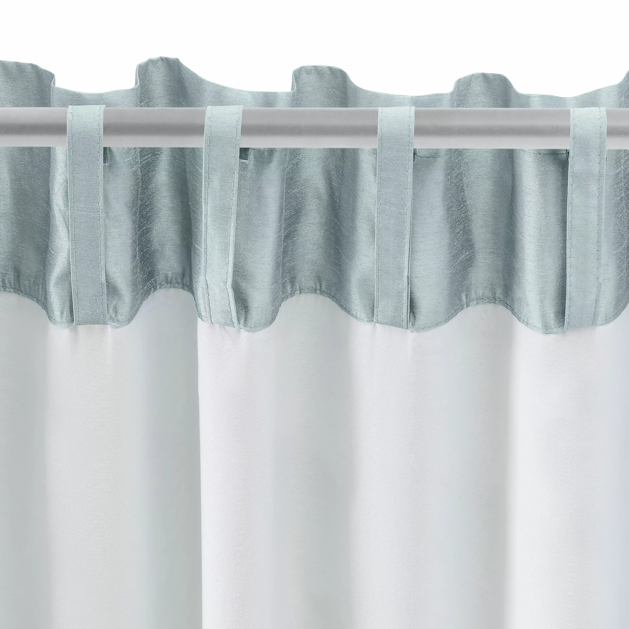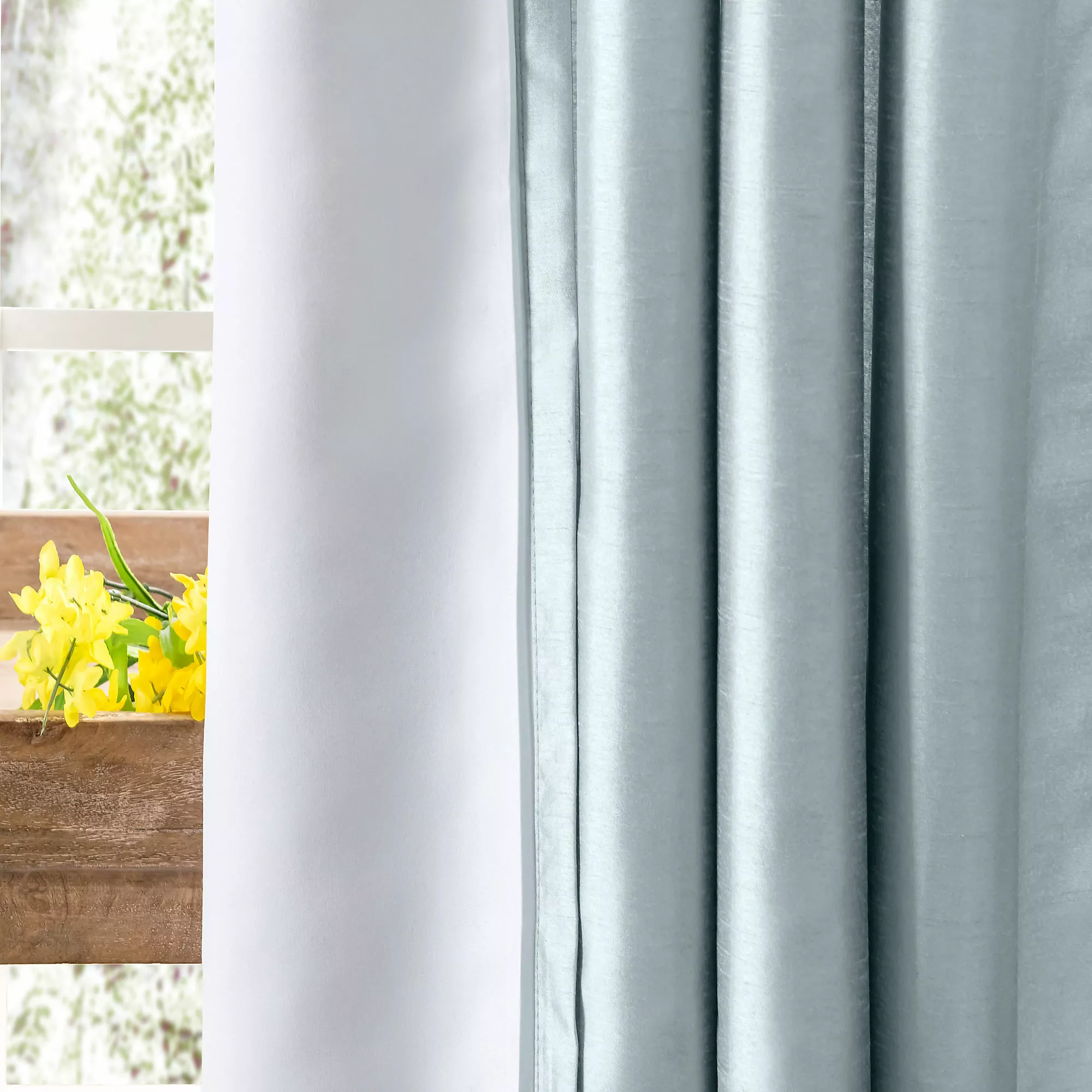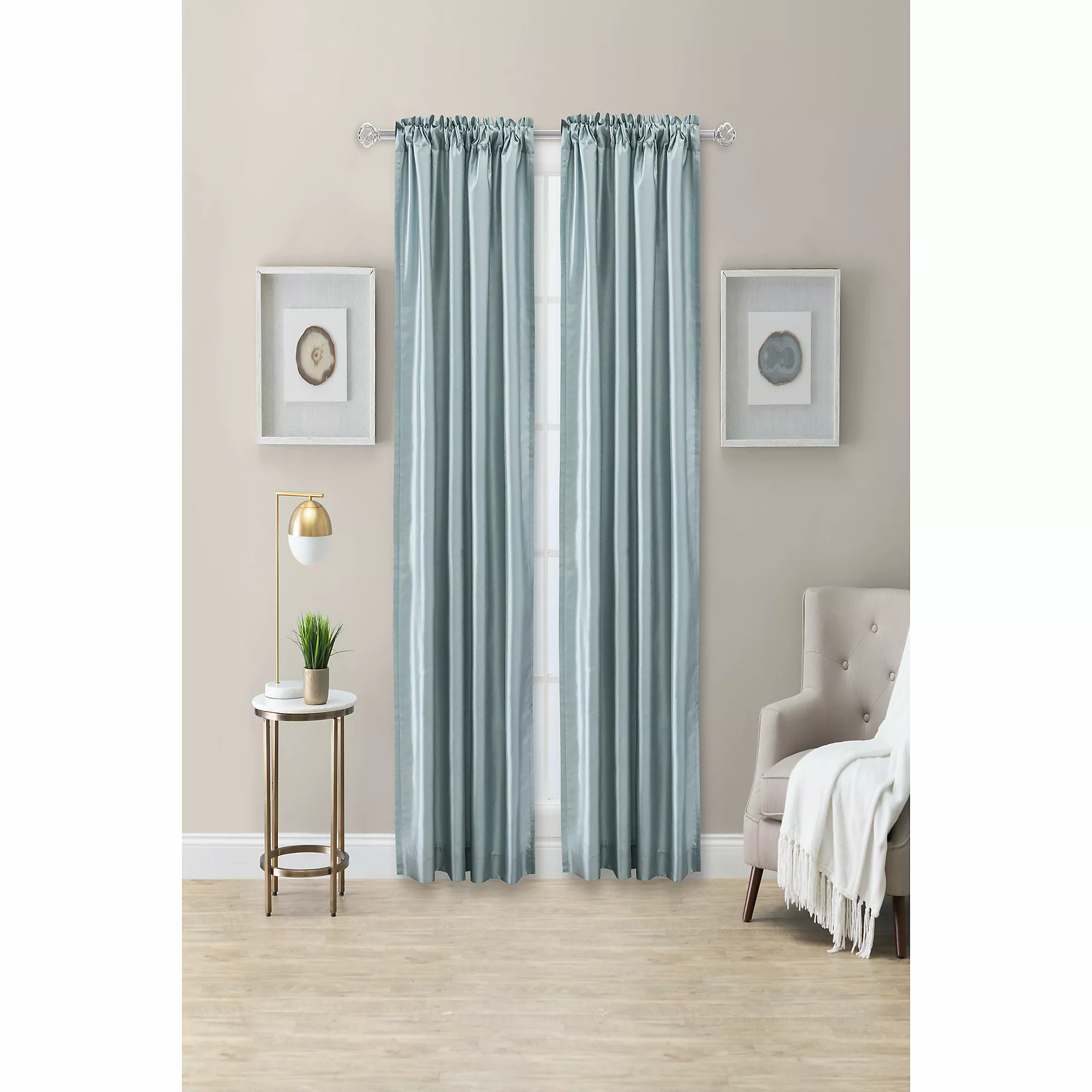 Stunning from floor to ceiling. A sheen that shifts beautifully with the light, our faux silk will bring elegance and class to any room. 100% polyester fabric gives the look of silk without the cost. Fully lined to further enhance the drape. Back tab design offers 3-way hanging options: 3” rod pocket for a classic look, back tabs for a pleated effect, or clip rings for easy slide open and close (clip rings not included). Tailored curtain pairs measure 100 inches wide (both 50-inch panels together).