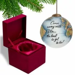 Inner Beauty Christmas glass ornament is perfect for holiday gift giving and family favorites to treasure year after year. This inner beauty ornament is intricately hand-painted on the inside of mouth-blown glass. With an adjustable antique gold-colored cord with tassel provides a beautiful and easy way to hang each ornament on a Christmas tree or a decorative ornament stand. All beautifully packaged in a satin-lined, brushed suede gift box.