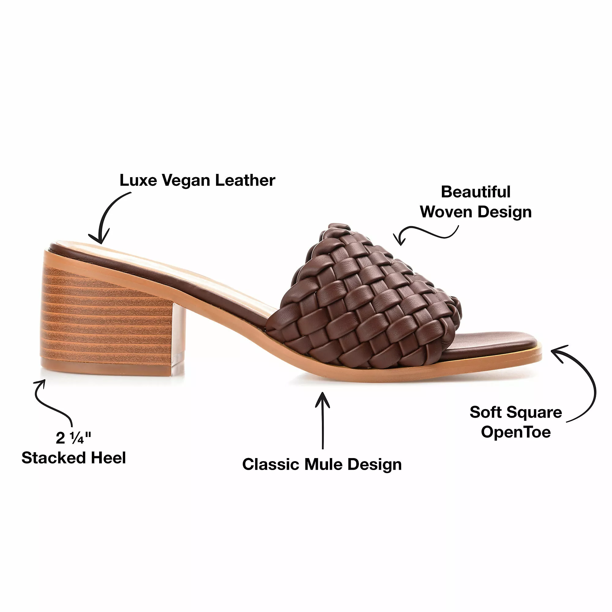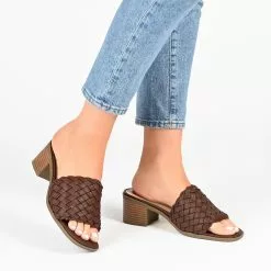 Slide into a chic new look with the Fylicia by Journee Collection. This mule silhouette is shaped with vegan leather and a comfortable padded footbed paired with a walkable block heel. An open toe adds a flirty finish, and a woven design details the vamp.