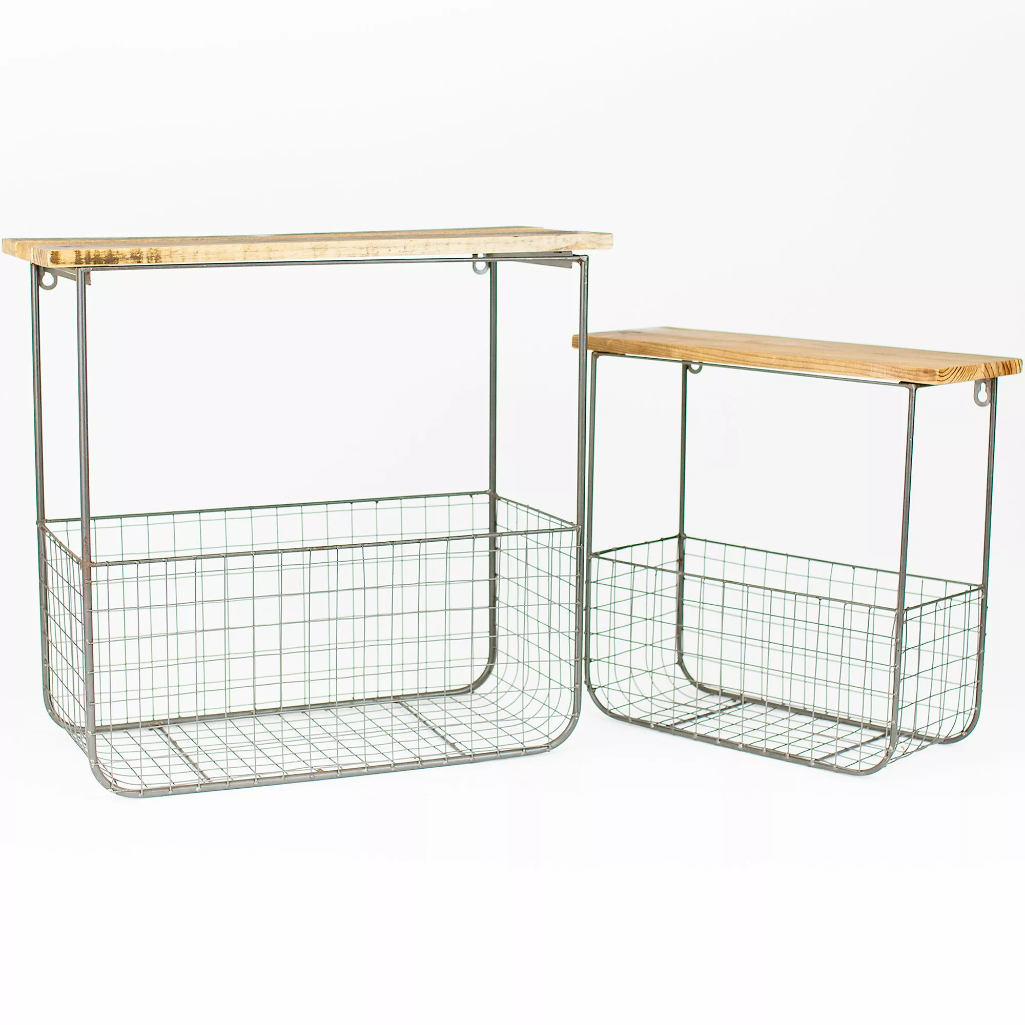 These wire basket shelves make the perfect bathroom storage statement. Keep small towels, soaps, and other toiletries tidied up in this classy units for a clean look. Â