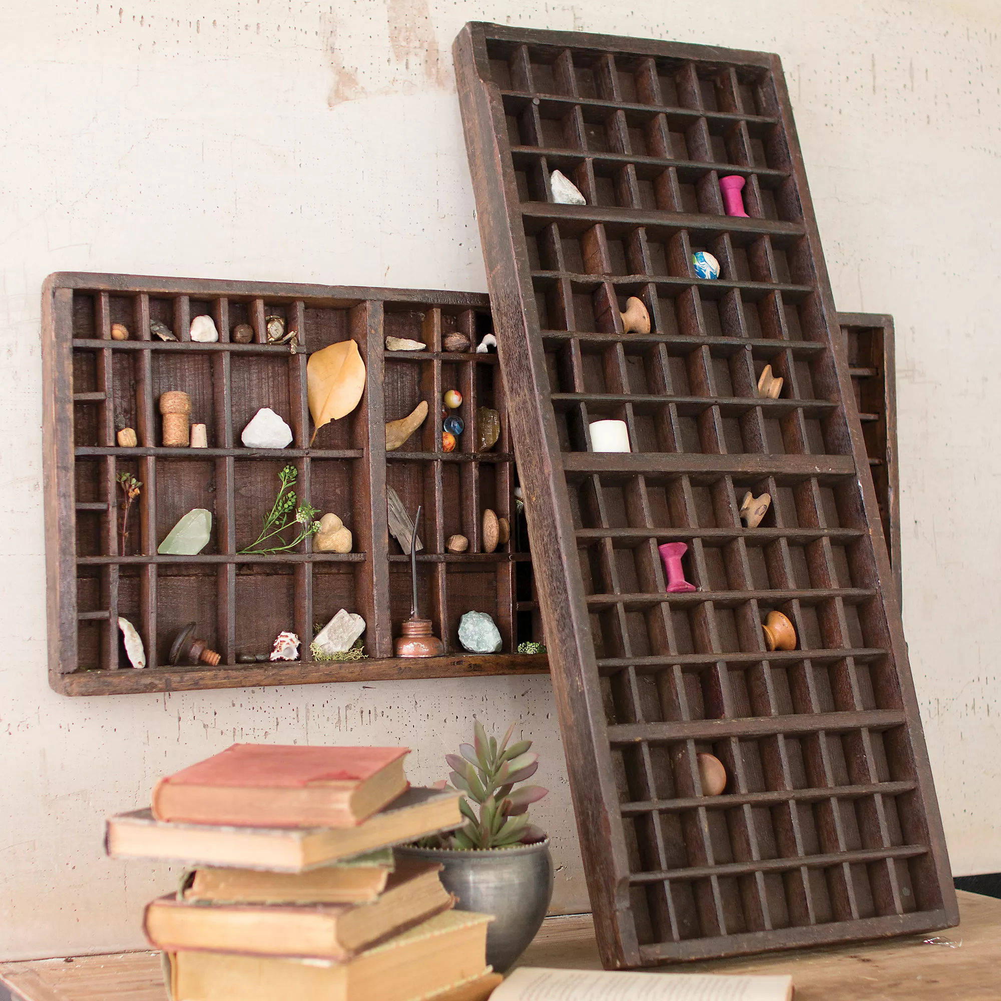 This wooden printers tray is truly unique with a fascinating story to tell. It’s up to you to choose how it’s told. With its plethora of little compartments, varying in shape and size, this vintage design treasure allows you to curate your own piece of wall art. Display your miniature collectibles and keepsakes with quirky charm.