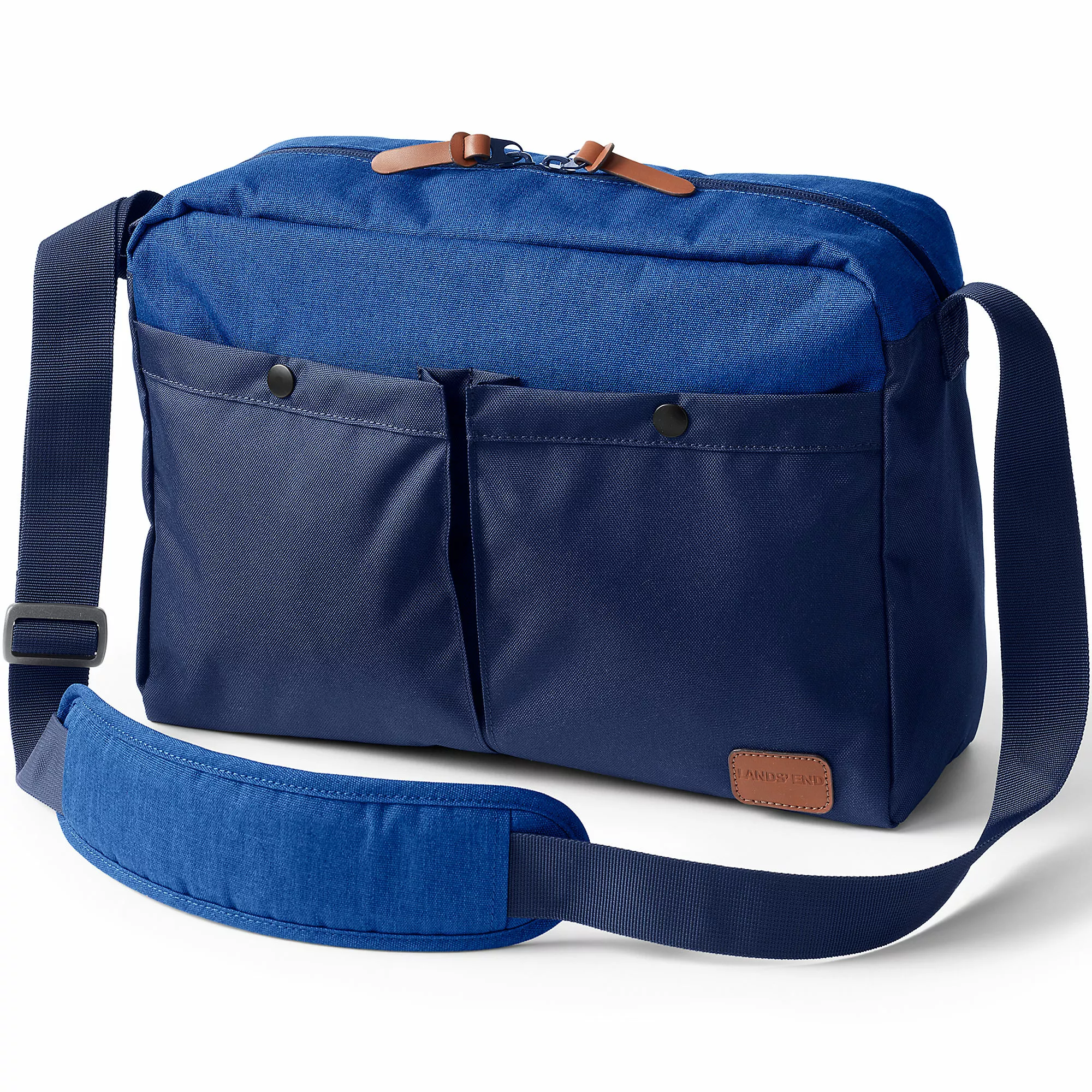 You want a quality messenger bag you can buy now, use every day? This is it. The outside is a polyester fabric that resists water. Inside, a water-resistant polyester lining and a plethora of pockets for stowing all your stuff. (There’s even a full-width padded laptop sleeve.) There are pockets on the outside, too. The result? A bag you’ll reach for day after day.