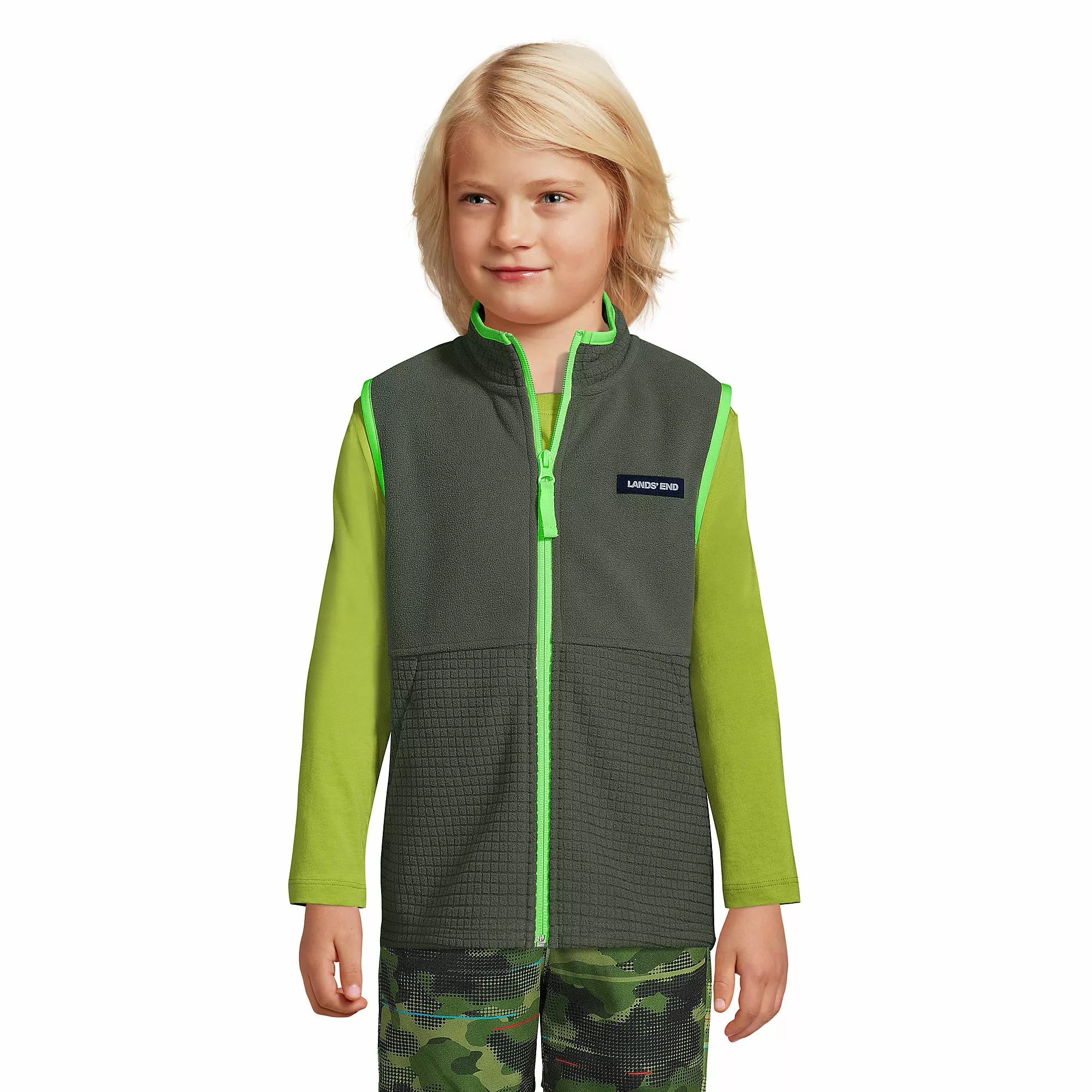 The latest concoction from our Lands’ End lab, grid fleece is at once familiar and like none you’ve encountered. The grid design serves a few purposes. One, it increases airflow and breathability, so kids never feel stuffy. Two, it’s even warmer than a standard fleece when layered. And three, those things combined make it adept at indoor-to-outdoor transitions (and vice versa). Did we mention it looks cool, too? Add on the full-zip front in this vest silhouette, and you have a versatile piece they’ll turn to again and again. It’s not just good. It’s grid.