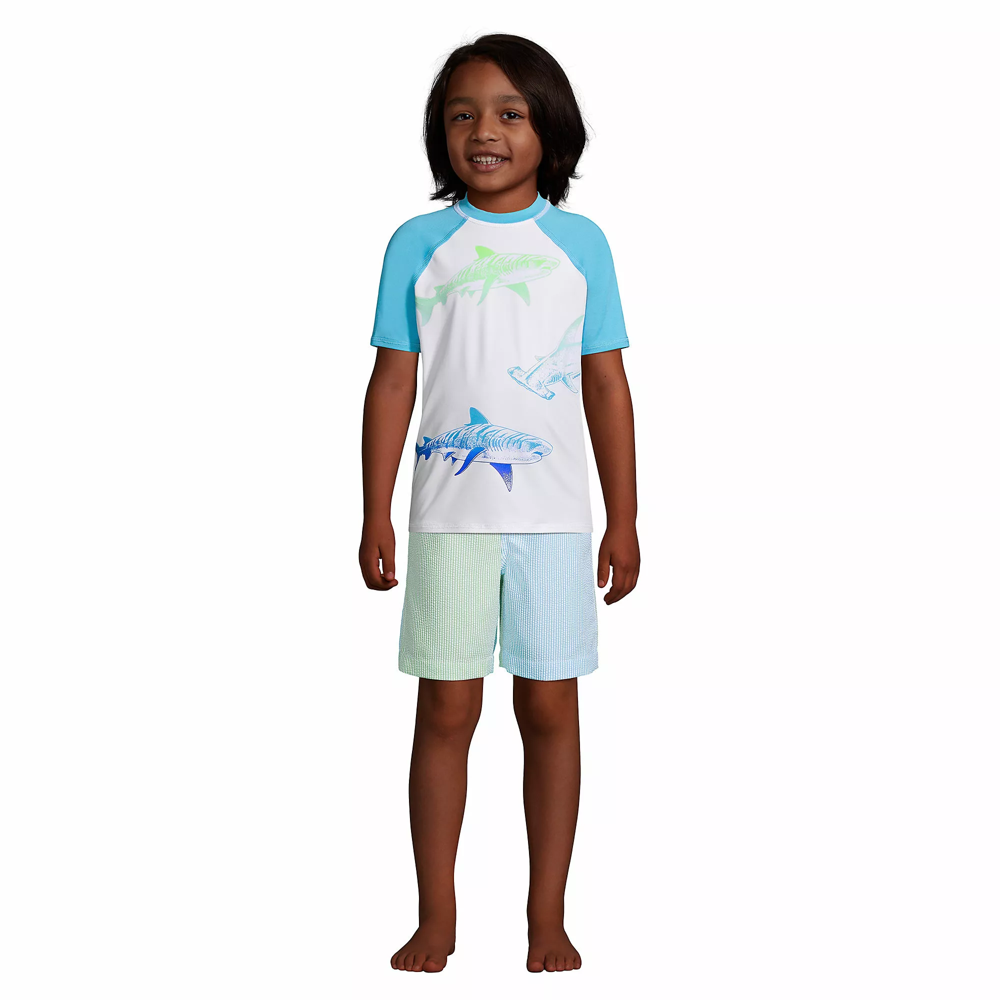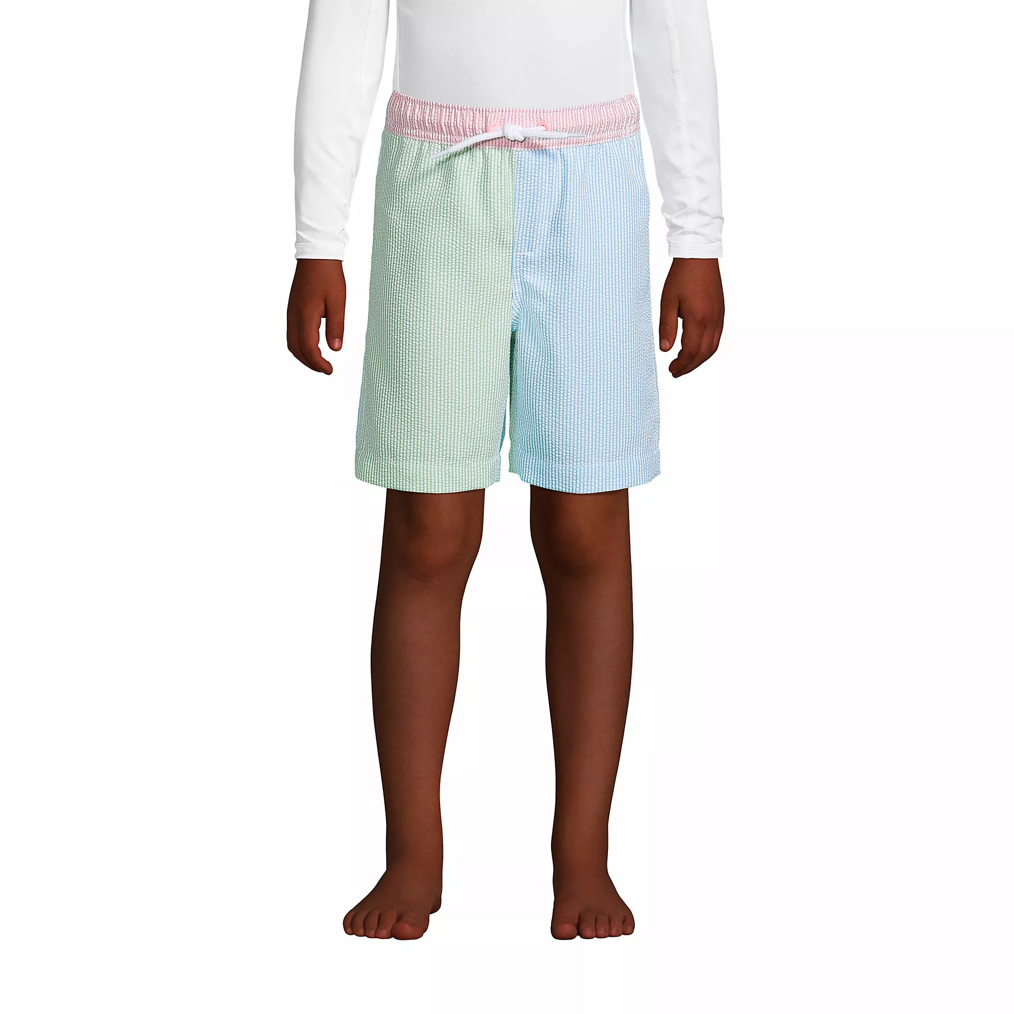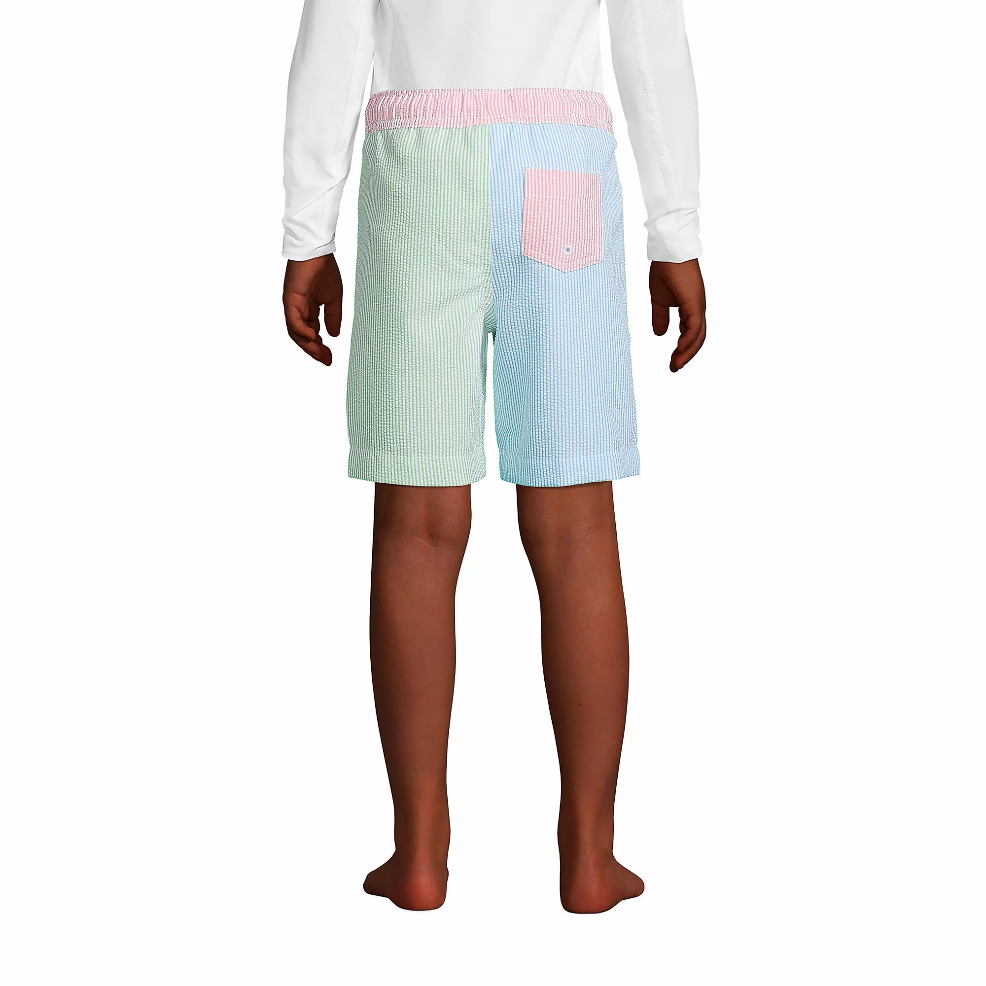 They’ll love the airy lightness of these fun seersucker swim trunks, and you’ll love their timeless look. A drawstring ensures a great fit, while UPF 50 keeps 98% of the sun’s harshest rays at bay. Water repellent fabric and a mesh lining keeps them comfy and there’s a back pocket, too. Here’s the classic pair they’ll wear from the beach to backyard and back again.