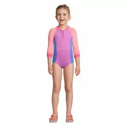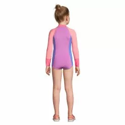 It’s like a rash guard and one-piece swimsuit all in one! Plus, the front zipper allows for easy on & off wet or dry. And, for your peace of mind, we’ve used UV-blocking, UPF 50 rated fabric to protect them from the sun’s harmful rays and lined the suit to keep them properly covered.