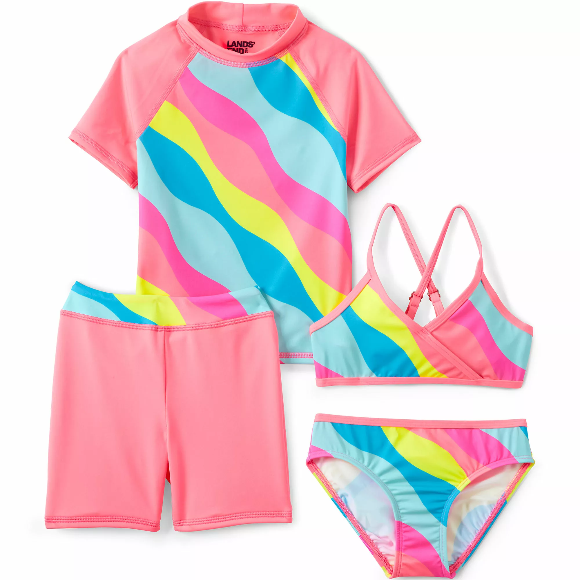 If you’re tired of having to play matchmaker every summer, we suggest a swim set. You get four coordinating pieces at one phenomenal price! Even better? Each style is UPF rated and packed with powerful moisture management properties.