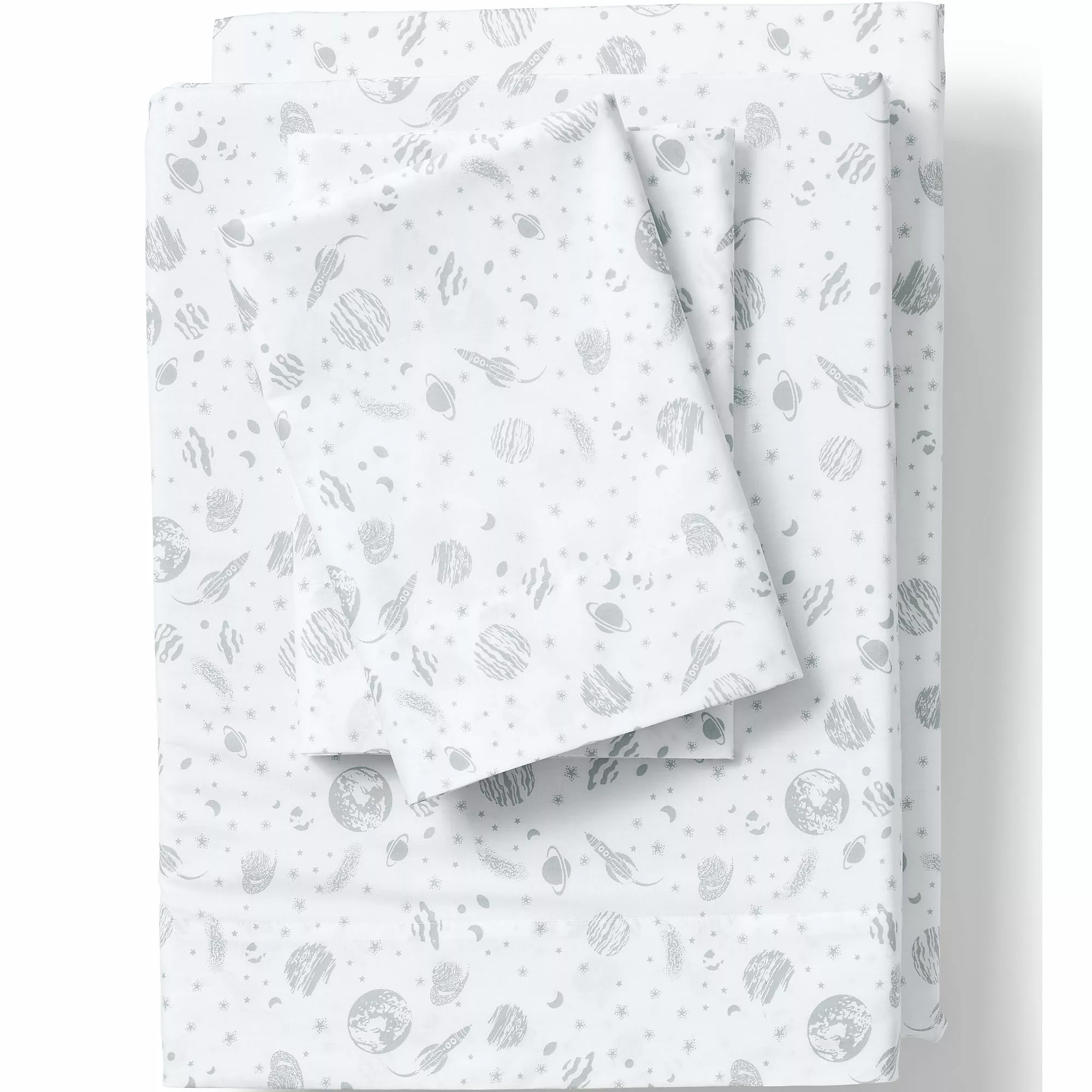 With the celestial prints on these sheets, kids will be having dreams that are out of this world. Soft, 180 count percale is crisp and comfortable.