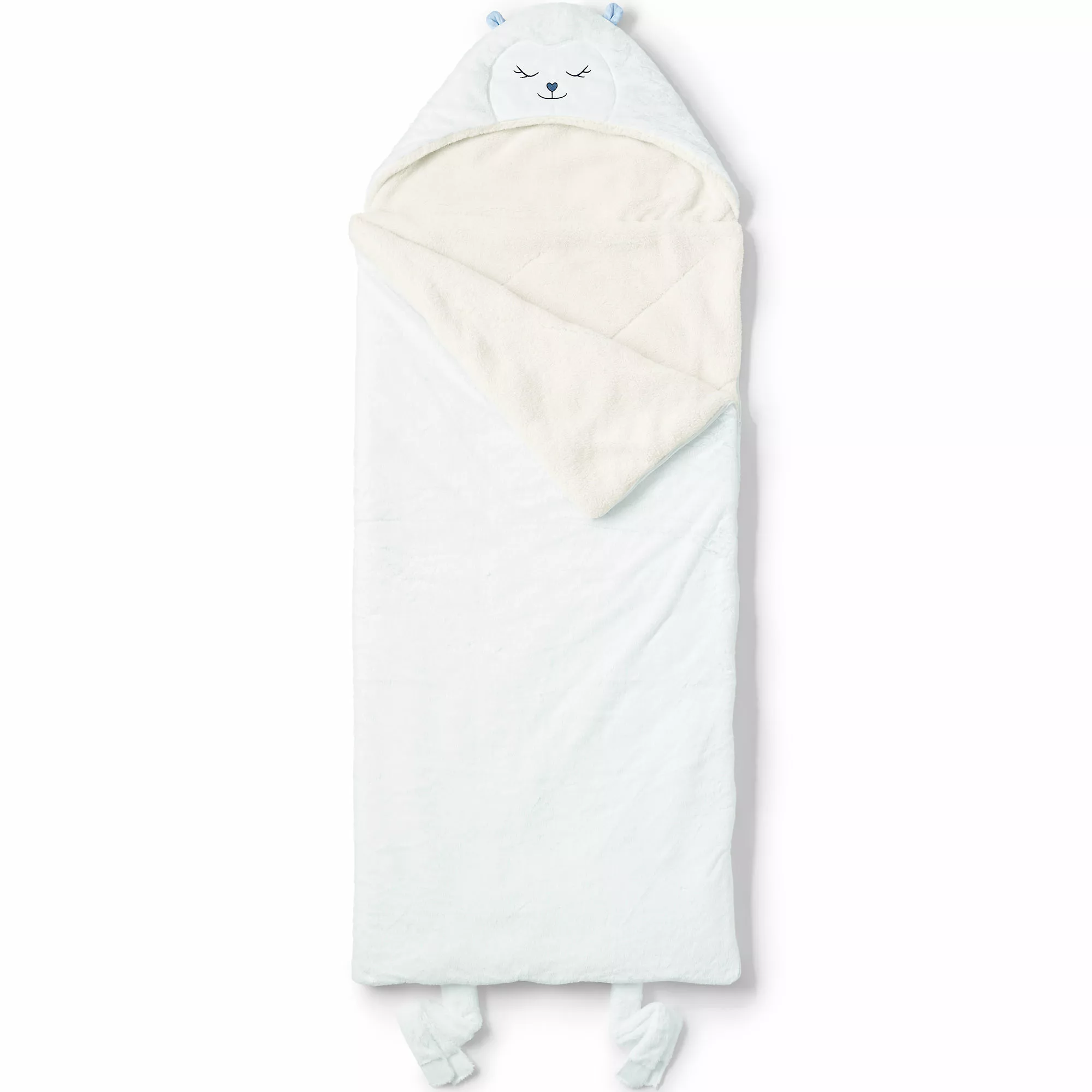 We’ve lovingly crafted this cozy sleeping bag with faux fur fabric that’s delightfully soft to the touch, with a warm and fluffy sherpa fleece lining. They’ll love the personality added by the fun attached hooded pillow. And you’ll love that fact that we’ve sized it at 87”L x 33”W (including hood), meaning they won’t outgrow this too quickly.