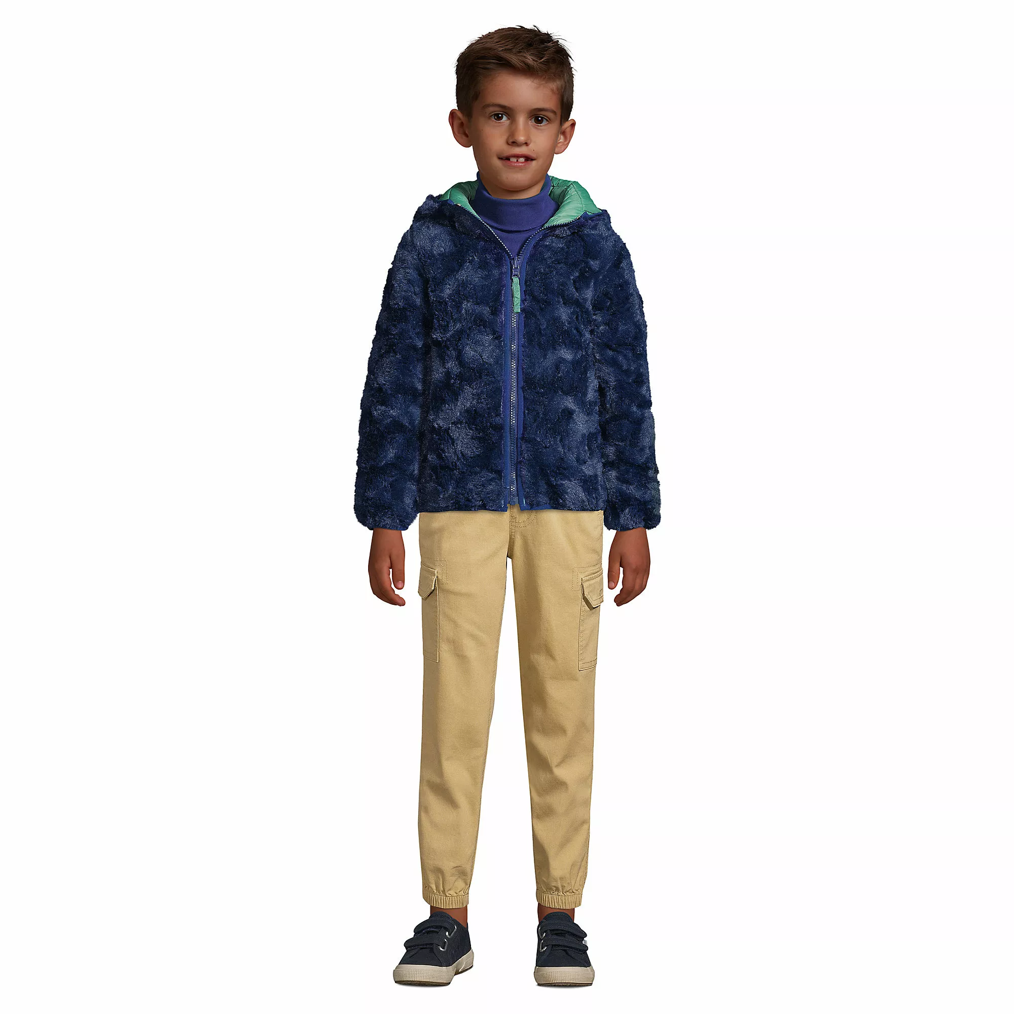 They can choose from the soft cozy side or water- and wind-resistant quilted side. Both insulated with the lightweight, airy down alternative known as PrimaLoft® Insulation ThermoPlume® (made from approximately 6 recycled plastic bottles per style!). And no matter what they’ll be warm and comfortable, which is what matters most.