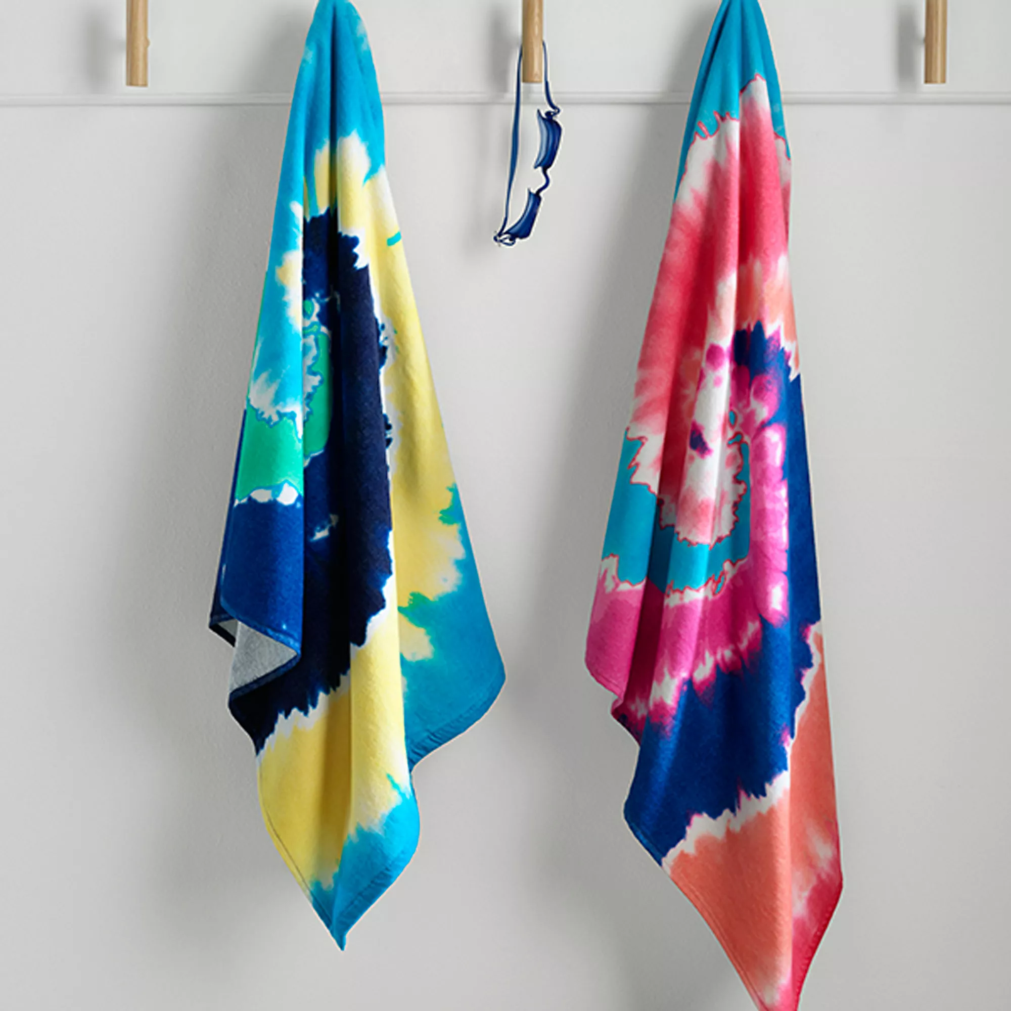 Generously sized at 32″Wx64″L, kids can sprawl out on or wrap up in their favorite colorful design. Patterned side flips to a solid side. Plush loops are soft and absorbent and provide cushioning from the pool deck or hot sand. Plush velour side reverses to terry loops. Plus, all our beach towels have been tested and are rated UPF +50 for excellent UV protection. *ASTM D 6603 Standard Guide for Labeling of UV-Protective Textiles.