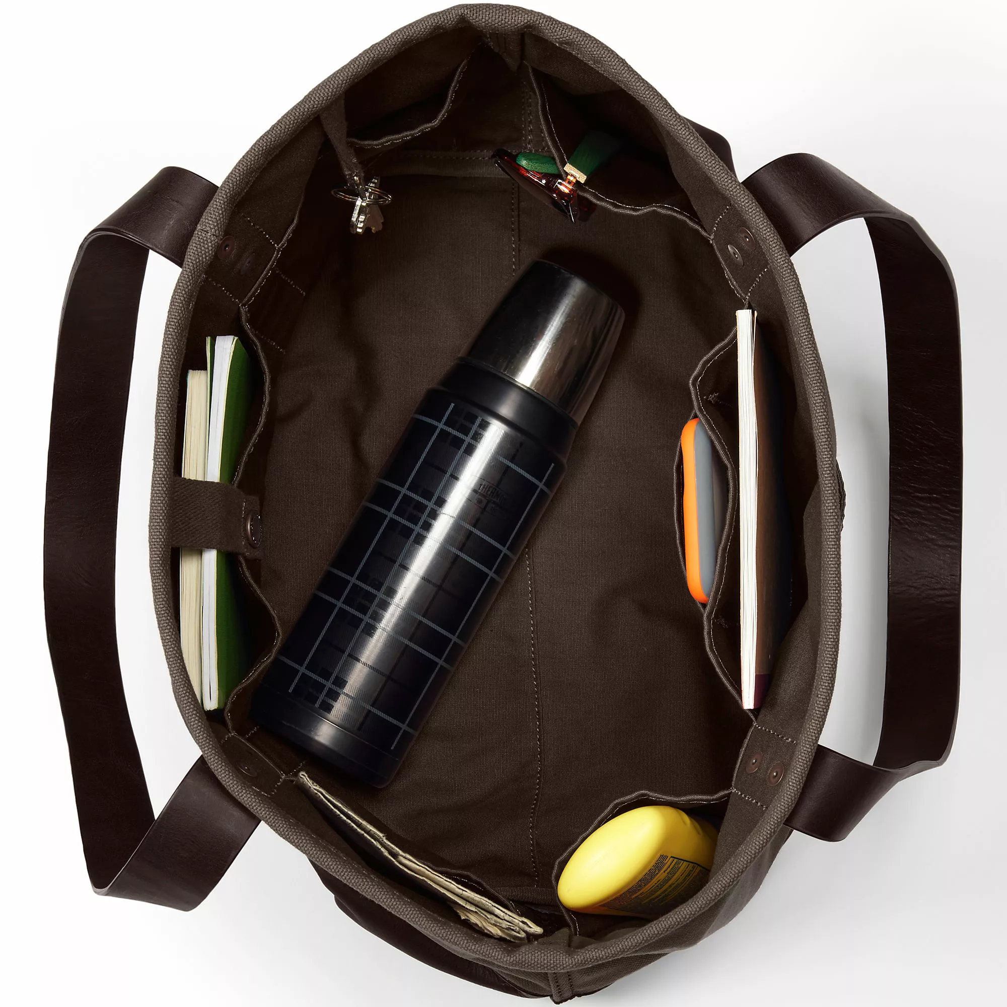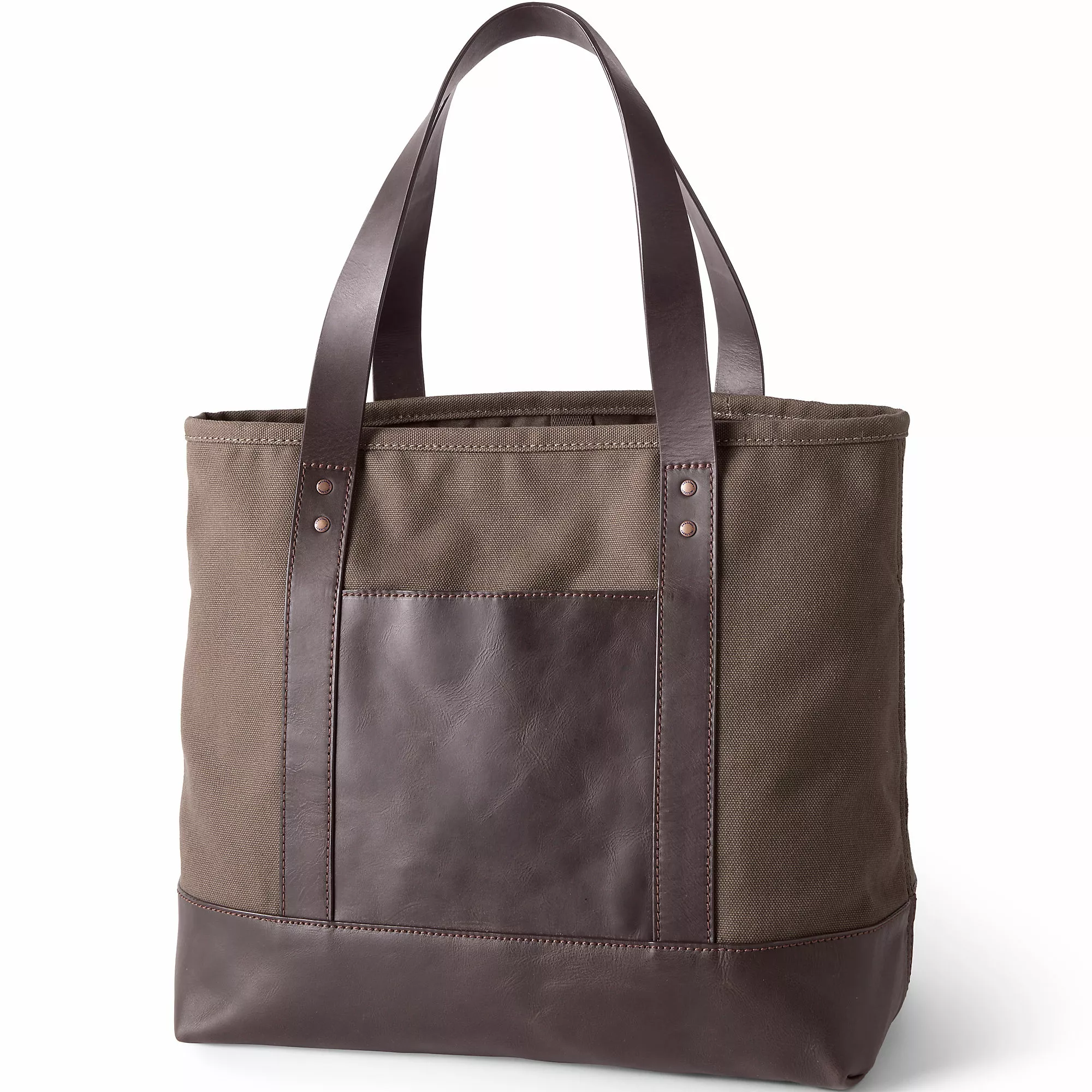 Goes above and beyond your average errand partner. Built to last, with a super-tough waxed canvas exterior and a rich, 100% leather base and front pocket. Interior pockets and a key ring keep things organized. The durable leather handles make for easy carrying, whether you’re headed across country or across town.