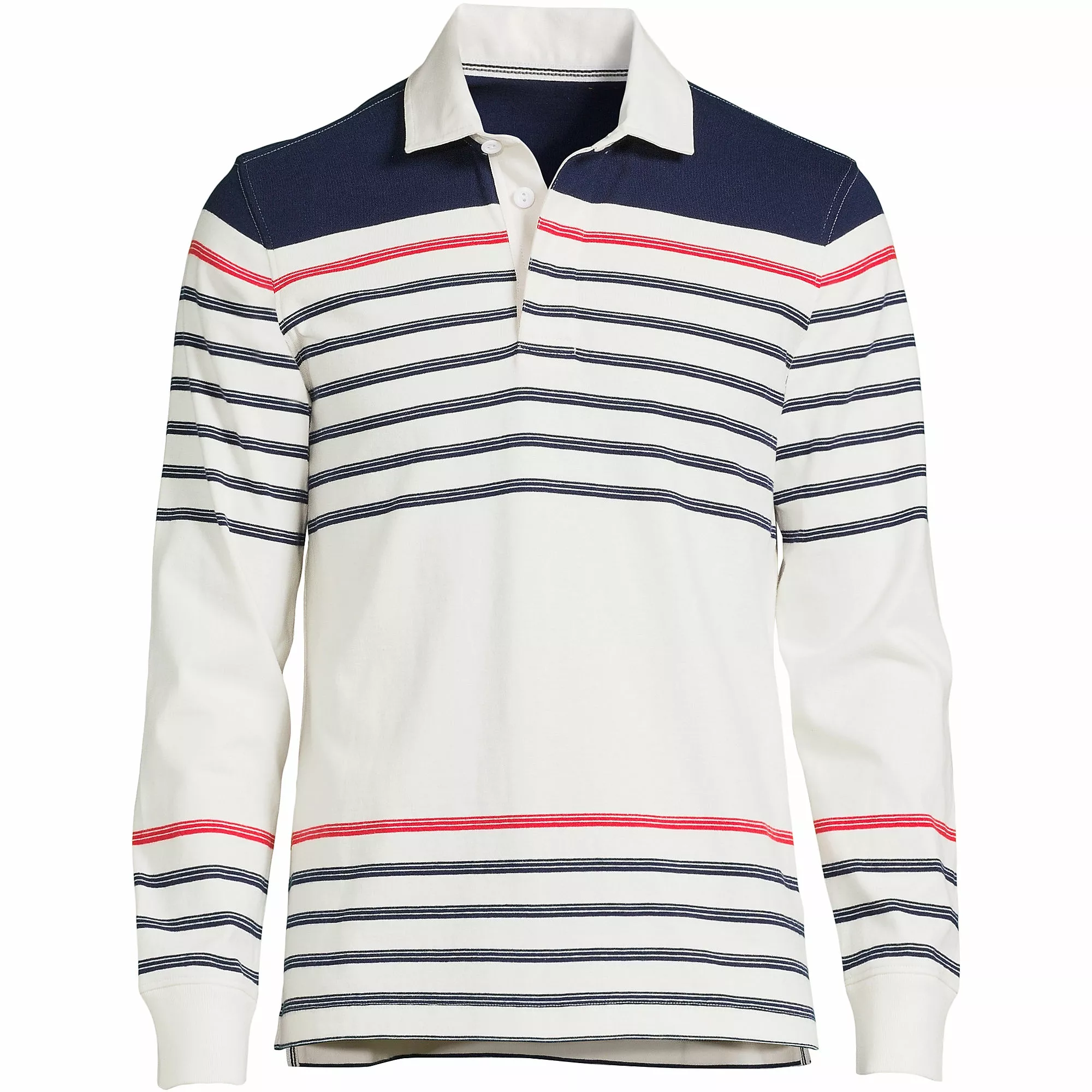You’ll love our Striped Rugby. It’s substantial yet breathable 100% cotton jersey, garment washed so the fabric is softened up – broken in, but not broken down. (That washing also minimizes shrinkage, which is a good thing.) The stripes are vibrant – and will stay that way. As for features, there are enough to make some others cry, “foul!” Like twill tape on the placket and nicely finished tennis tails with twill-taped side vents. A nice twill collar. The long sleeves have rib-knit cuffs. And comfort? We think you’ll agree: we’ve scored a goal.