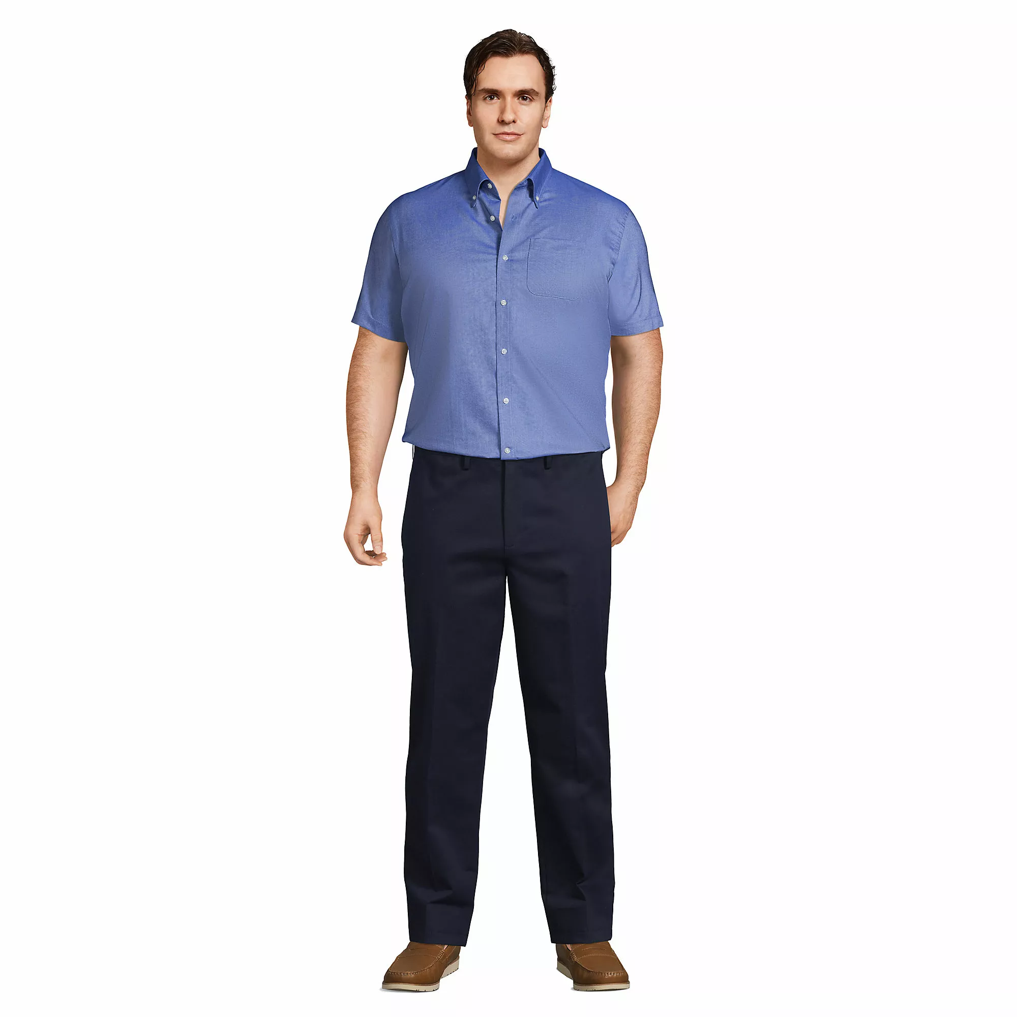 This Oxford Shirt offers a cool & casual design with functional features. Wear it on its own or paired under a sweater or blazer for those cooler days. Plus, its unique fabric blend is treated to resist wrinkles and release stains.