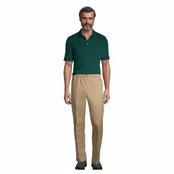 Easy-care chinos that last the year and more are a must. Making them more comfortable is also super important. The solution? A comfy elastic waist. Non-functional button and zip fly give the look of regular chinos. Belt loops, too. Invisible-from-the-outside Iron Knees® patches add durability right where you need it most.