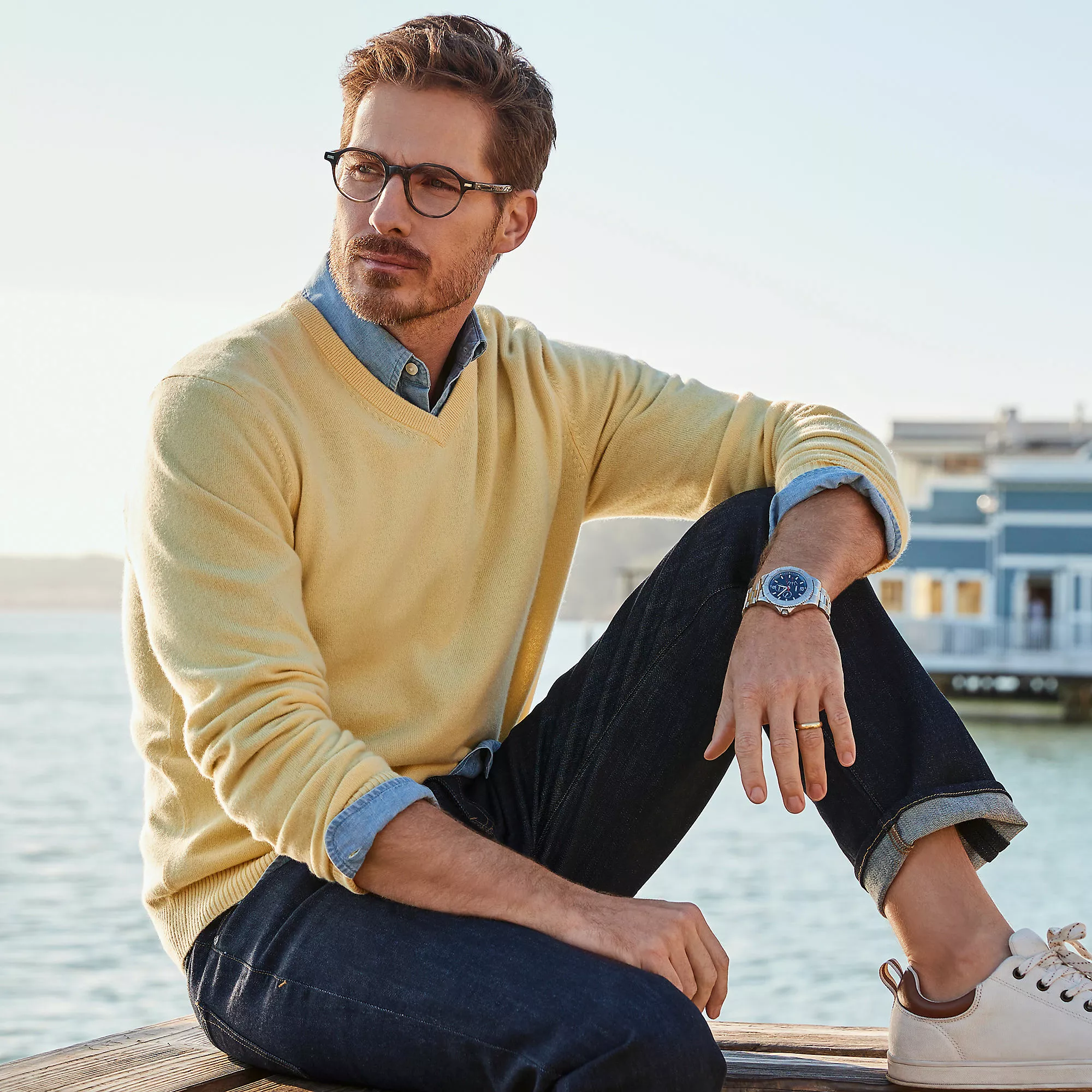 A cashmere sweater with cleaner, more modern lines. The fit layers well over a dress shirt or under a blazer. The lighter weight makes it the perfect choice for year-round use, so you don’t need to pack it away when spring follows winter. We didn’t skimp on the details: 1×1 rib knit neck, cuff, and hem. Plus, fully fashioned shoulders for a better fit — some more expensive sweaters lack this feature, but we think it helps make our sweaters a cut above.