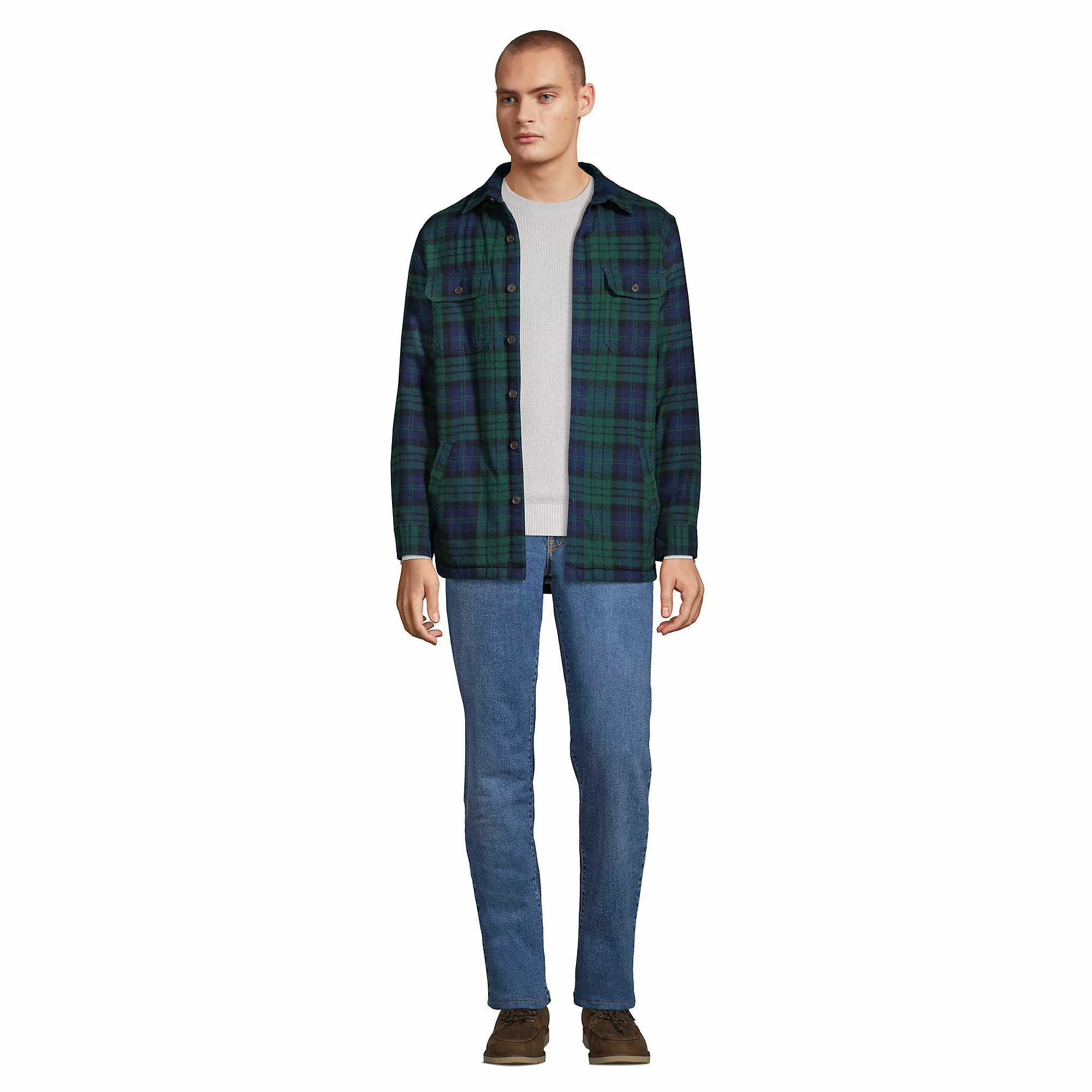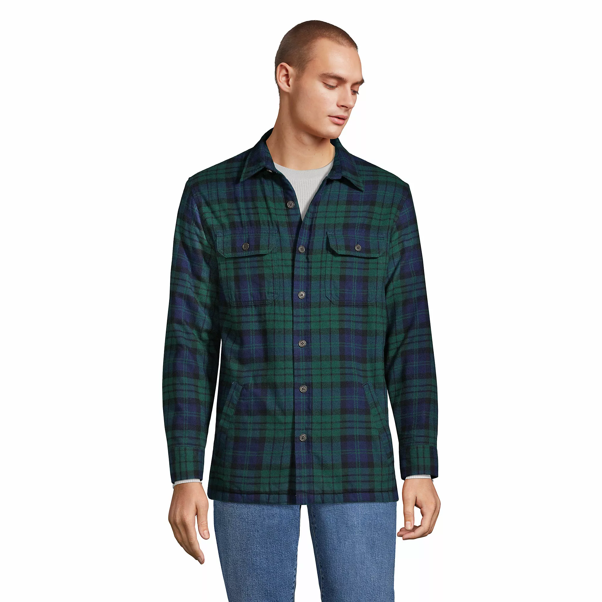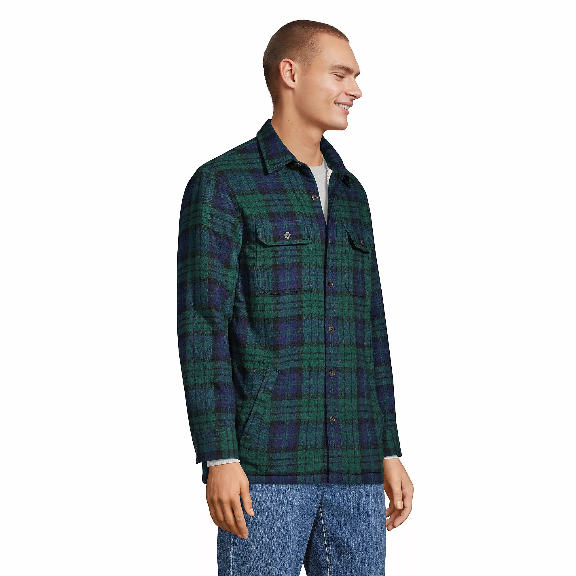 This shirt jacket has it all. On the outside, warm and soft brushed flannel. On the inside, plush, cozy sherpa. It’s got all the classic shirt jacket details like a button front, side vents, button cuffs and two button-closed chest pockets. On top of that, we’ve added a couple front kangaroo-style pockets. When the temps drop, you’re sure to be reaching for this one.