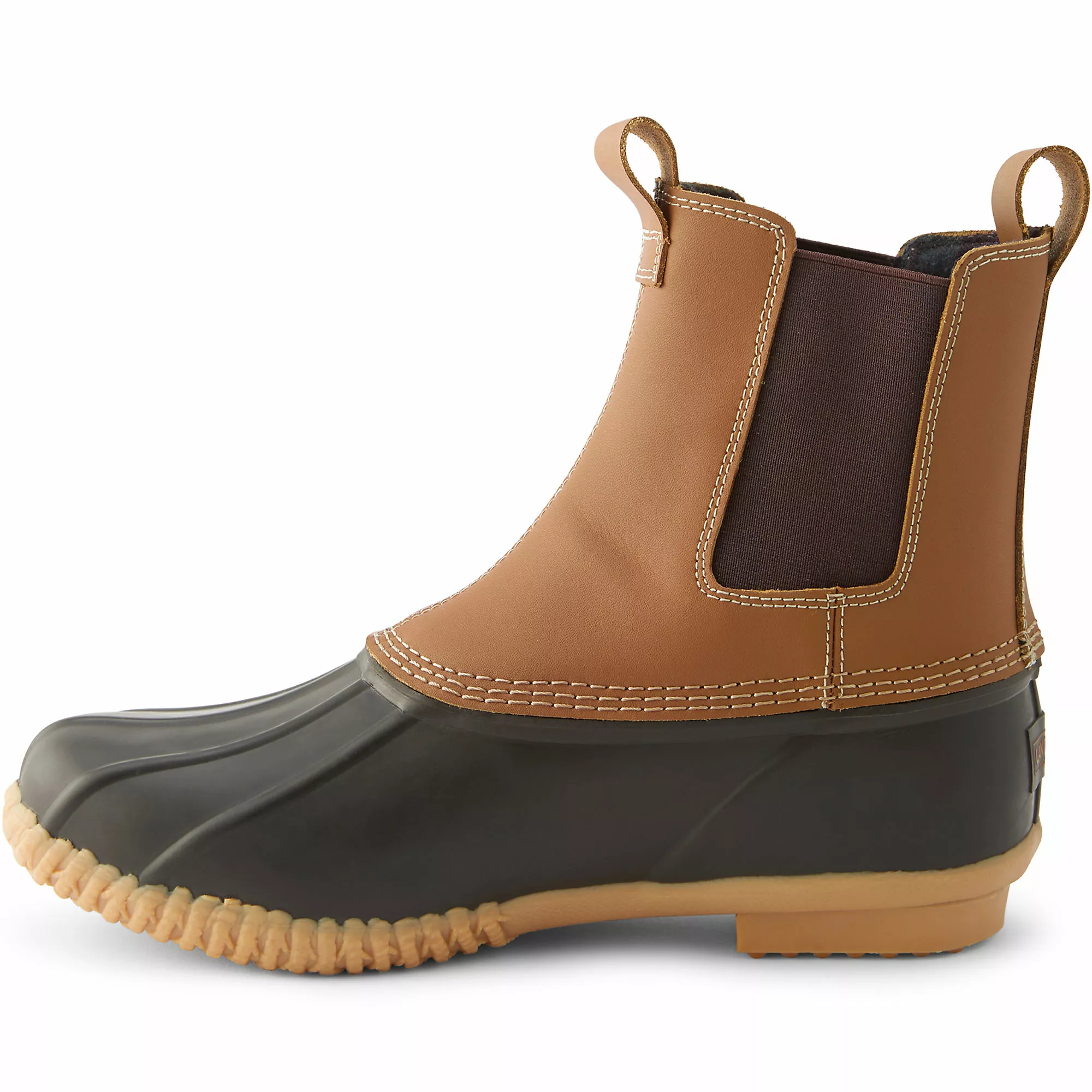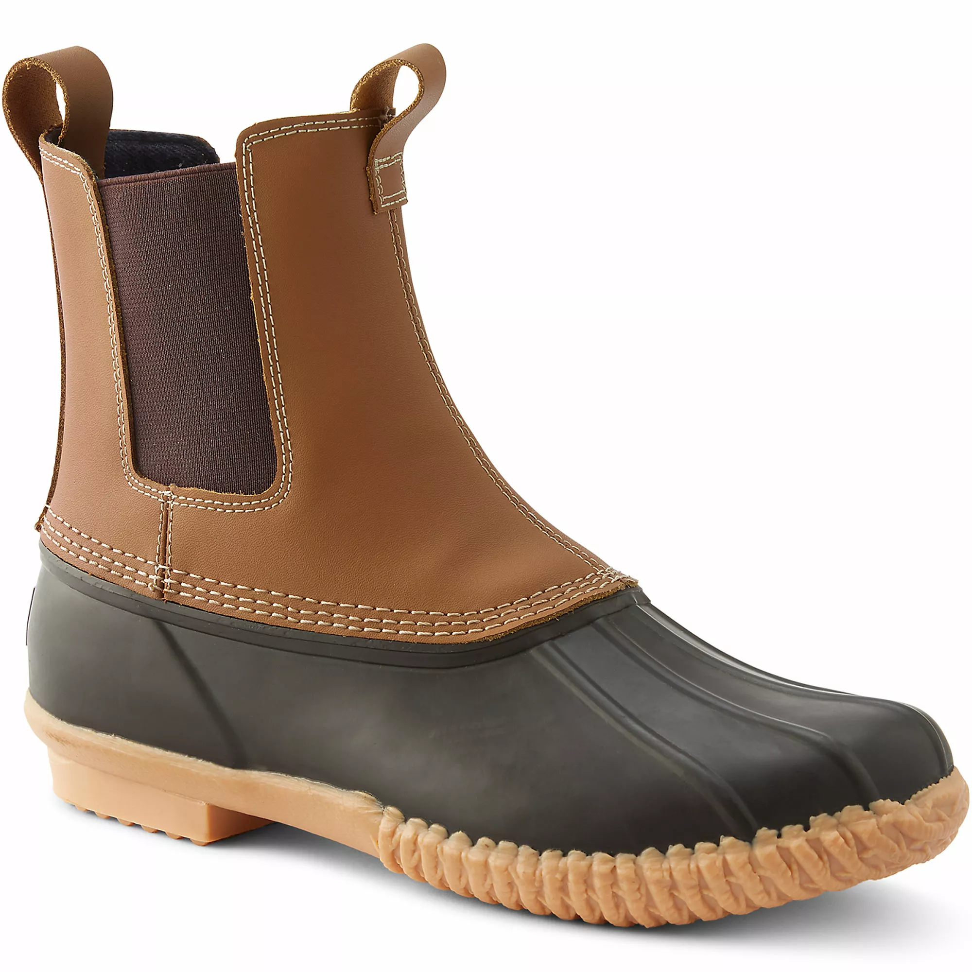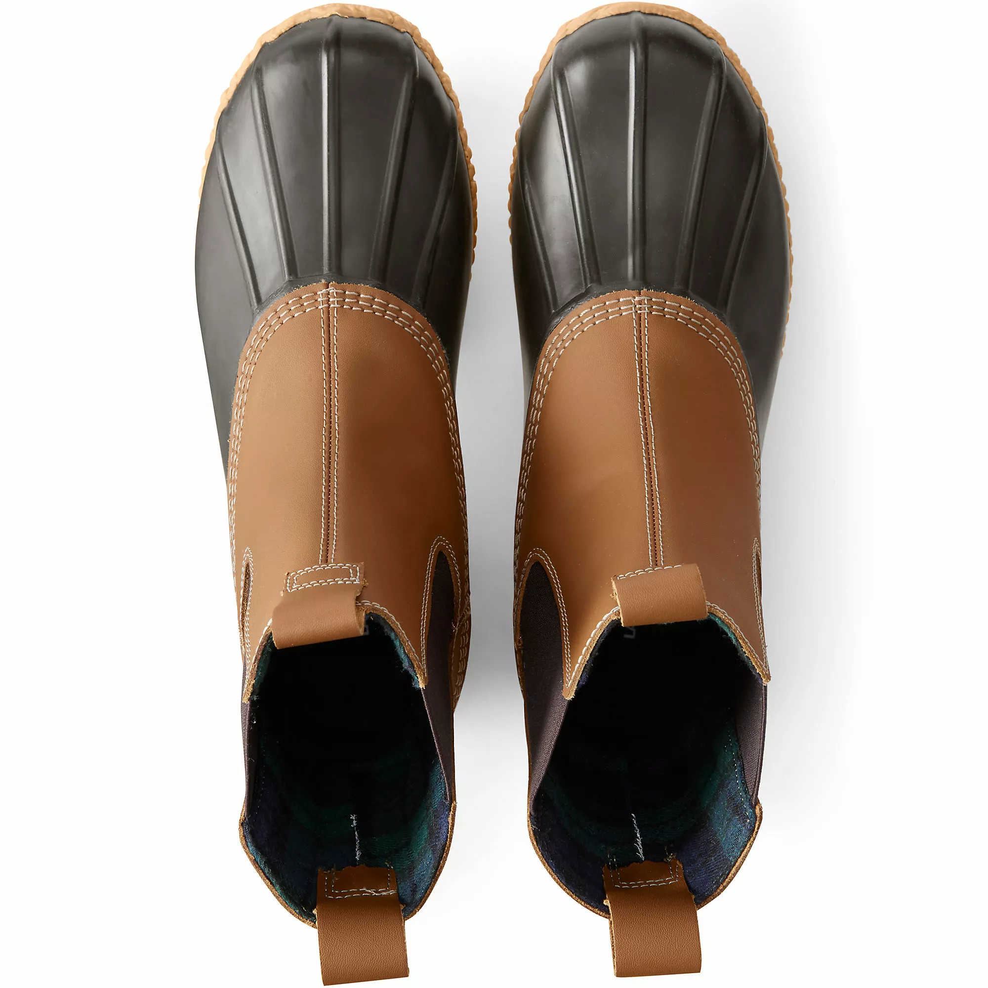 A classic boot for outdoor adventures in fall, spring or winter. Outside you’ll find a leather upper, waterproof rubber shell and a grippy rubber outsole. Inside, a soft flannel lining for the rubber shell and a cushioned footbed lined with 400 grams Thermolite insulation to fend off chills. Twin elastic gores make them easy to slip on and go. Pair with jeans and a buttondown for easy, casual style.