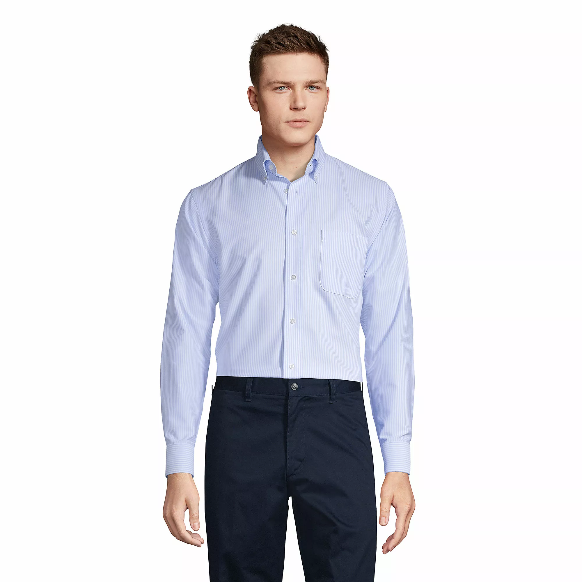 Our popular Oxford shirts now feature an easier than ever to take care of fabric. Still featuring classic, expertly tailored details and made in our no-iron, out-the-door cotton blend.Â