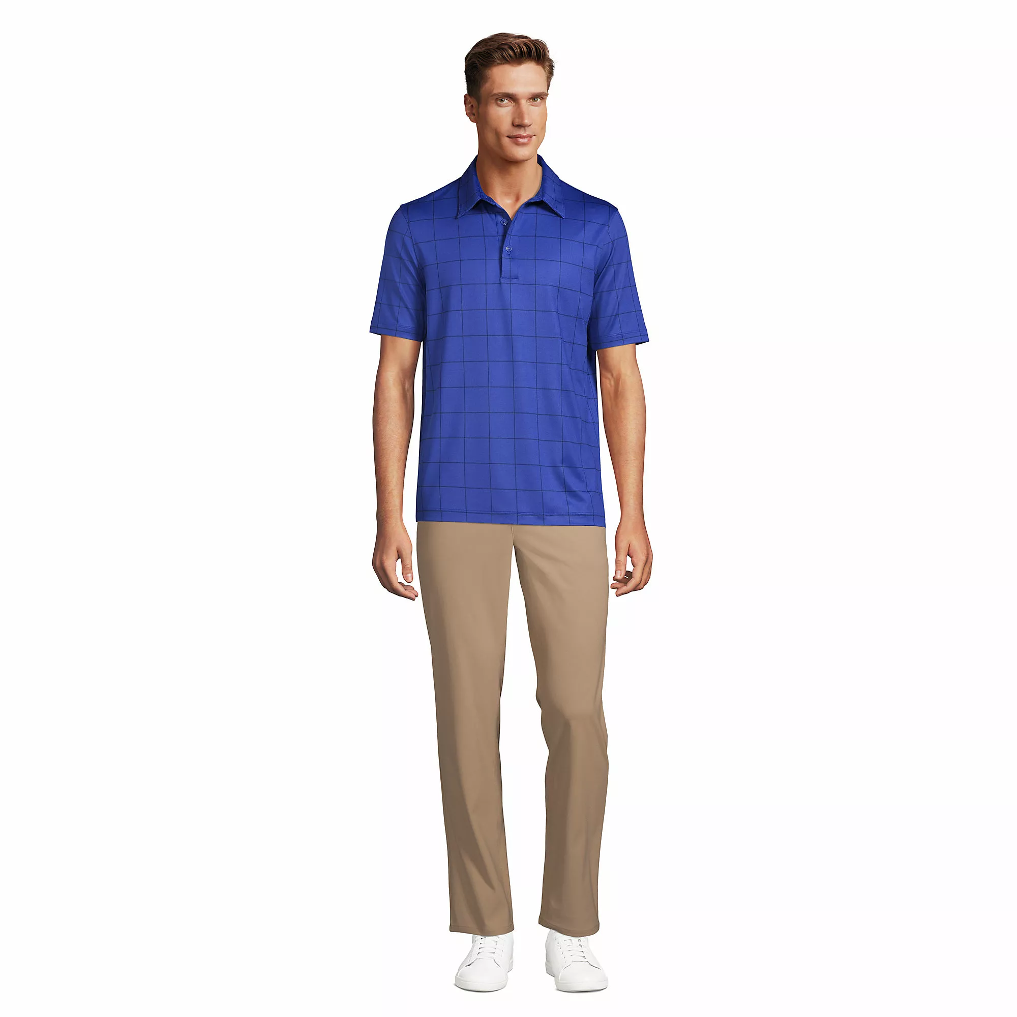 High-tech Rapid Dry fabric inspired by athletic apparel stretches and wicks moisture for cool performance, and the distinctive print pattern gives it a professional look. This polo is also rated UPF 50, so it’s perfect outdoors.