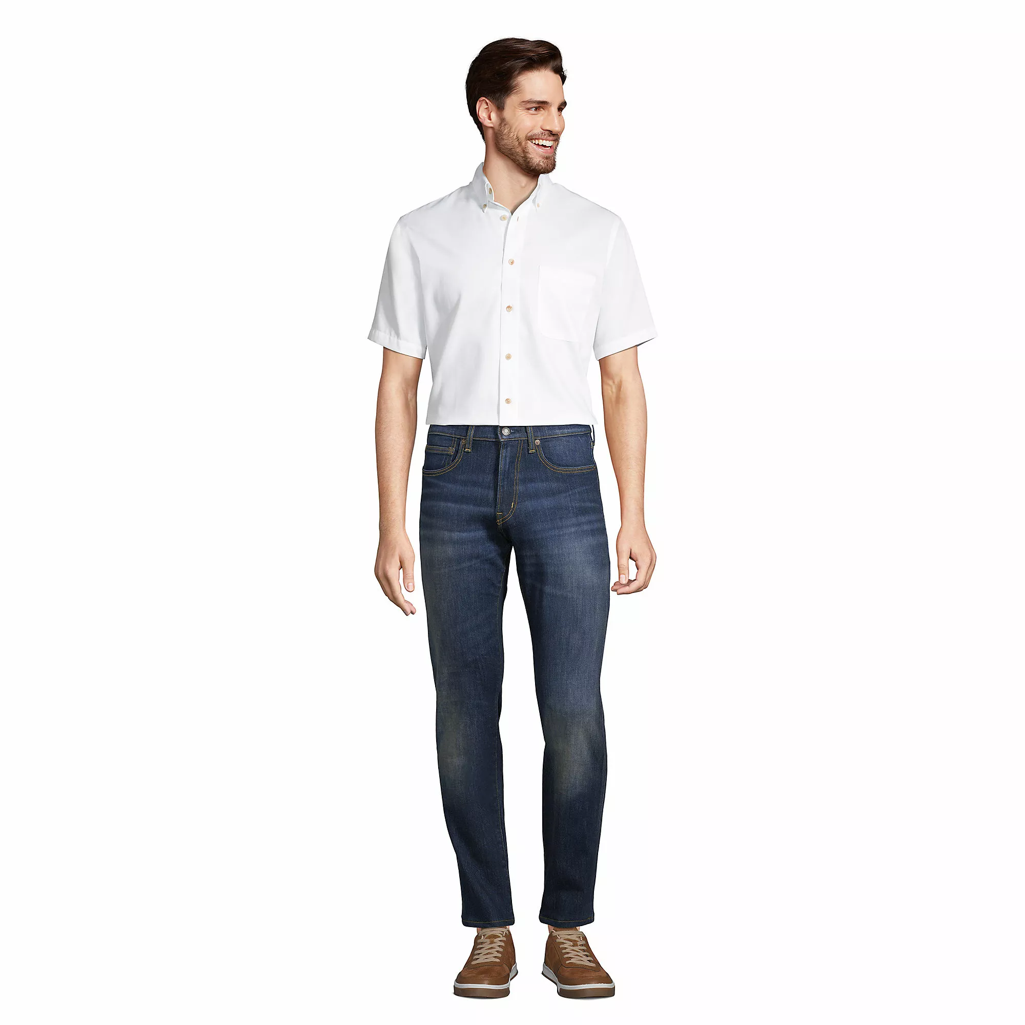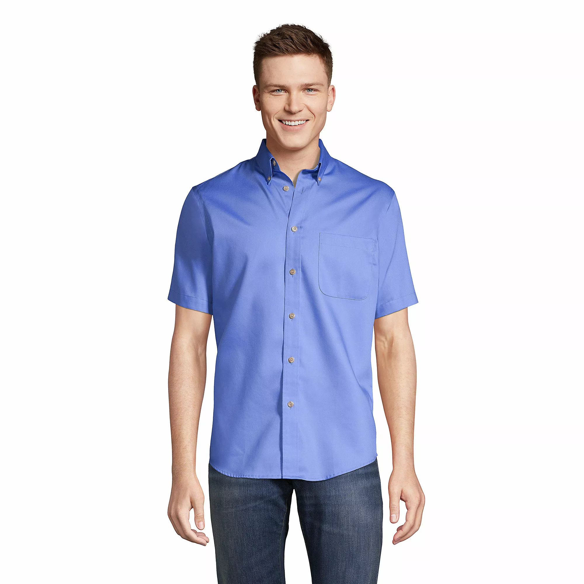 We took our easygoing Chino fabric and turned it into a sport-shirt superstar. It’s treated to fight wrinkles and stains. Plus, it comes out of the dryer looking neatly pressed and ready to wear. With clean-finished seams, single chest pocket and buttondown collar, it has all the makings of your favorite dress shirts. Mock horn buttons.