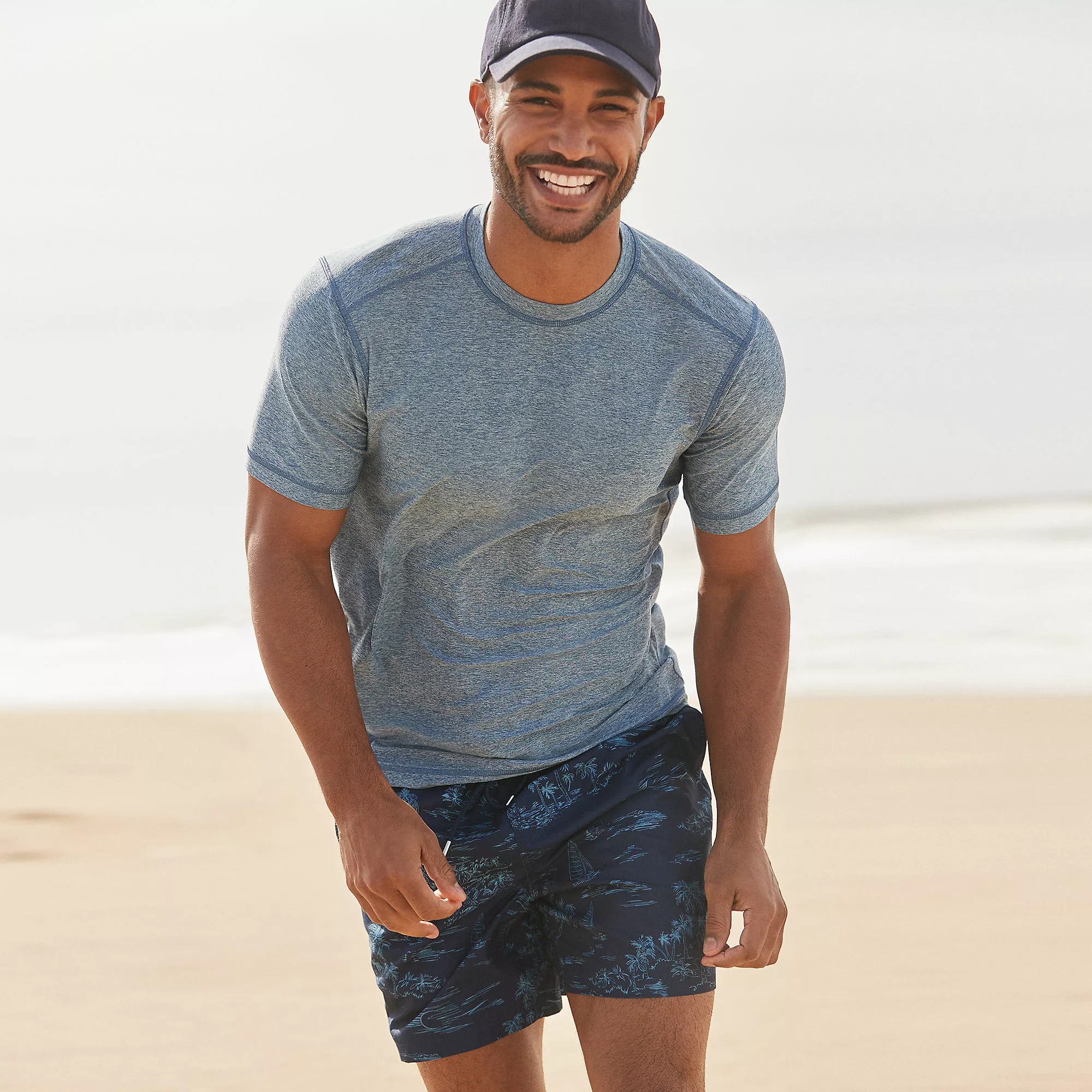 Sun exposure: it starts with your early morning mow and continues through to that pre-dinner swim sesh. We know it feels good to bask in the glow, but we want you to do it safely. Let us help with this triple-threat tee. First, the UPF 50 finish on the fabric blocks approximately 98% of the sun’s rays. Second, airy polyester works with moisture-wicking properties to keep you cool & dry. And third, its quick drying nature makes it an easy pick for pool parties, beach days and more. It really is just a sun-believable tee.